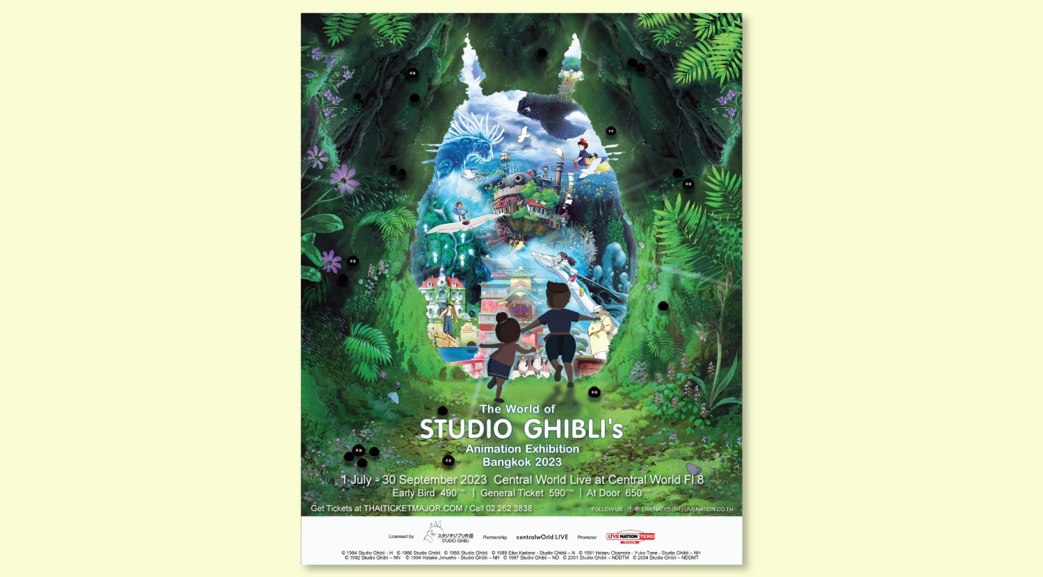 นิทรรศการที่แฟนผลงานสตูดิโอ จิบลิ (Studio Ghibli) รอคอยมาถึงแล้ว! เมื่อตัวละครที่รักและภาพฉากต่างๆ จากแอนิเมชันที่รัก เช่น My Neighbour Totoro, Howl's Moving Castle, Spirited Away, Kiki's Delivery Service, Princess Momonoke และเรื่องอื่นๆ รวม 10 เรื่อง จะปรากฏอยู่เบื้องหน้า พร้อมให้ทุกคนเก็บภาพความประทับใจและความทรงจำดีๆ ไว้
