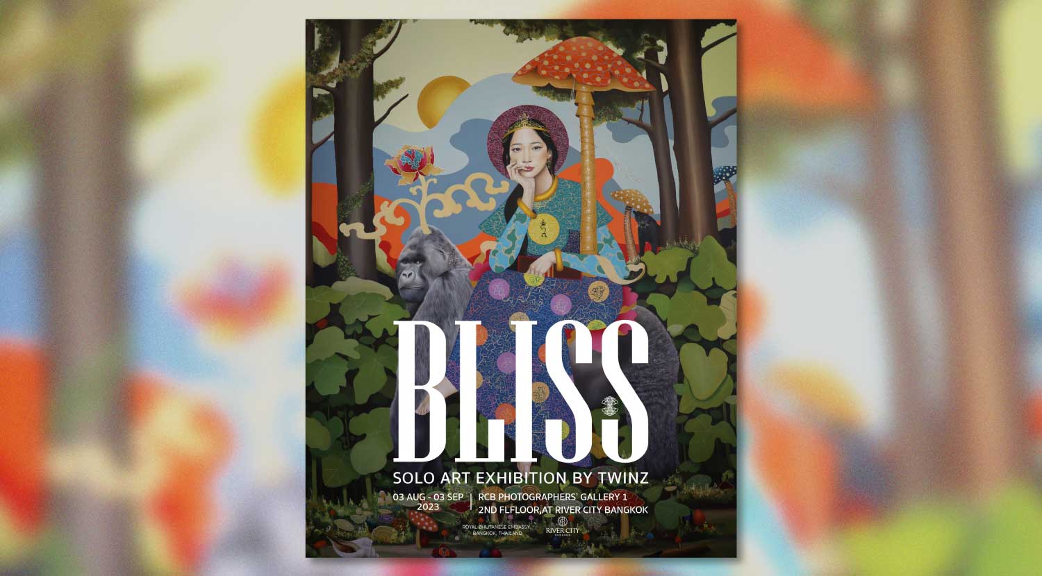 จะเป็นอย่างไร หากฝาแฝดสร้างงานศิลปะร่วมกัน ชวนชมนิทรรศการเดี่ยวจาก Twinz ศิลปินแฝดร่วมสมัยจากประเทศภูฏาน กับผลงานที่ได้รับแรงบันดาลใจจากคำสอนทางพระพุทธศาสนานิกายวัชรยานและวัฒนธรรมความเชื่ออันเก่าแก่และงดงามของภูฏาน โดย Bliss ที่แปลว่า ความสุข เป็นตัวแทนของคำว่า มหาสุขะ ความสุขสูงสุดอันเป็นนิรันดร์ทางพระพุทธศาสนาที่ซึ่งมีอำนาจสูงส่งเหนือความต้องการและความปรารถนาทางโลก