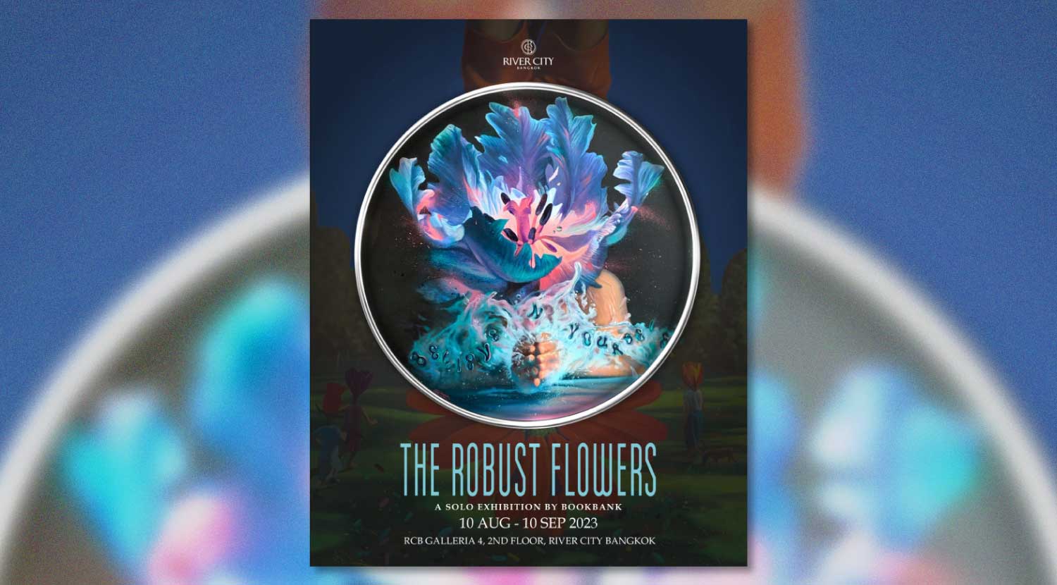 The Robust Flowers เป็นงานนิทรรศการเดี่ยวครั้งแรกของ Bookbank ศิลปินผู้นำเสนอภาพวาดเหนือจินตนาการ สำหรับผลงานชุดนี้เกิดขึ้นจากความหลงใหลที่ศิลปินมีต่อดอกไม้ ตัวแทนของความสุข ความสดใส และความงามอันแสนบอบบาง เช่นเดียวกับมนุษย์เราที่ต่างมีความไม่สมบูรณ์แบบและแตกต่างกันไป