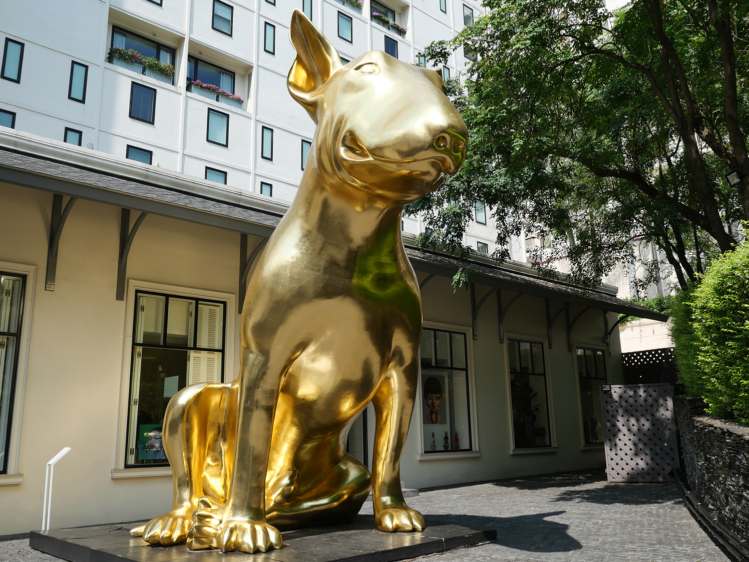 เจ้าหน้าที่ประกาศแจ้งนักท่องเที่ยวเมื่อเรือของโรงแรมเพนนินซูล่ากำลังเข้าท่า เราเดินขึ้นไปนั่งบนเรือ ชมวิวริมฝั่งแม่น้ำรับลมไม่กี่นาทีก็ถึงท่าของโรงแรม พนักงานแนะนำว่าผลงานศิลปะจัดแสดงอยู่ที่ล็อบบี้ ซึ่งเมื่อเดินขึ้นจากท่าแล้วมีป้ายบอกตลอดทาง