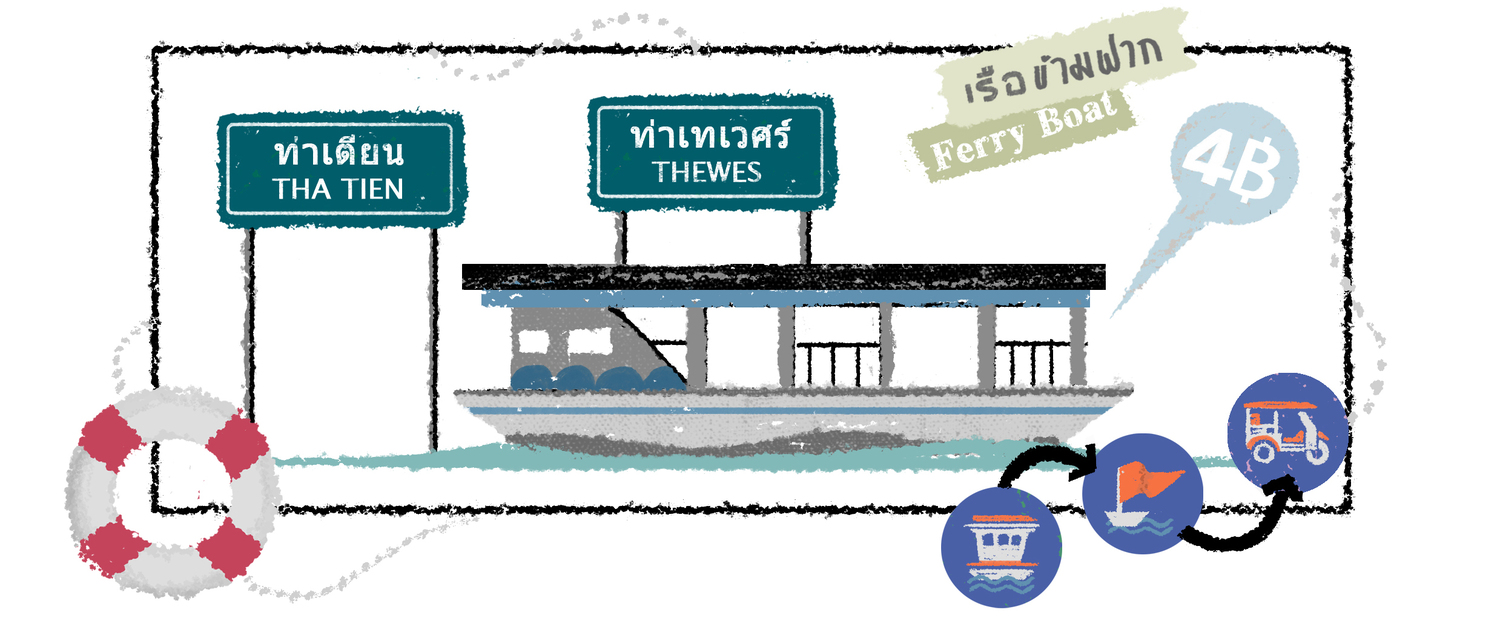 เรือข้ามฟาก: ค่าโดยสารคนละ 4 บาท ต่อเที่ยว
