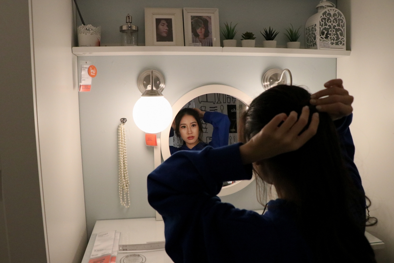 จุดเด่นข้อหนึ่งของอิเกียคือ การจัดเซตเฟอร์นิเจอร์ให้เข้าคู่กัน เธอจึงเลือกมาที่นี่เป็นที่แรก เพราะนอกจากชอบการออกแบบจัดวางแล้ว การจัดเซตแบบนี้ยังสร้างแรงบันดาลใจให้นำไปใช้ปรับแต่งที่บ้านของตัวเองด้วย