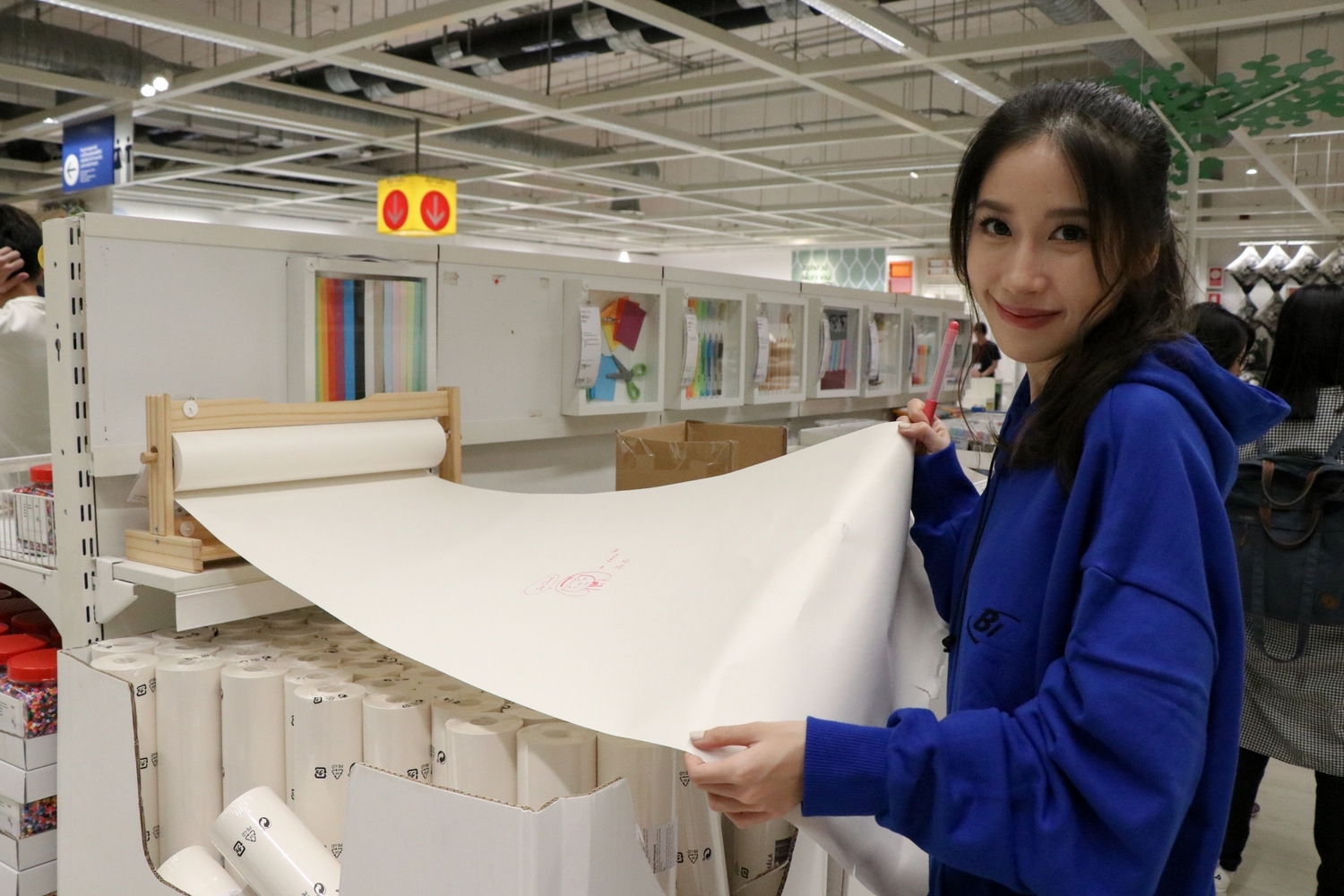 พอมาถึงโซนเครื่องเขียน อดีตนักเรียนออกแบบอย่างแจนจังก็ตรงรี่มาที่อุปกรณ์เครื่องเขียนชิ้นนี้ทันที ด้วยความที่กระดาษแผ่นนี้ยาวถึง 30 เมตร ไม่ว่าจะปากกาสีหรือสีน้ำก็แต่งแต้มจินตนาการของคุณได้ไม่สิ้นสุด วาดยาวขนาดไหนก็ไม่ต้องเปลี่ยนกระดาษแผ่นใหม่ ทำให้ช่วยผ่อนคลายเวลาที่เรียนหรือทำงานหนักได้เป็นอย่างดี