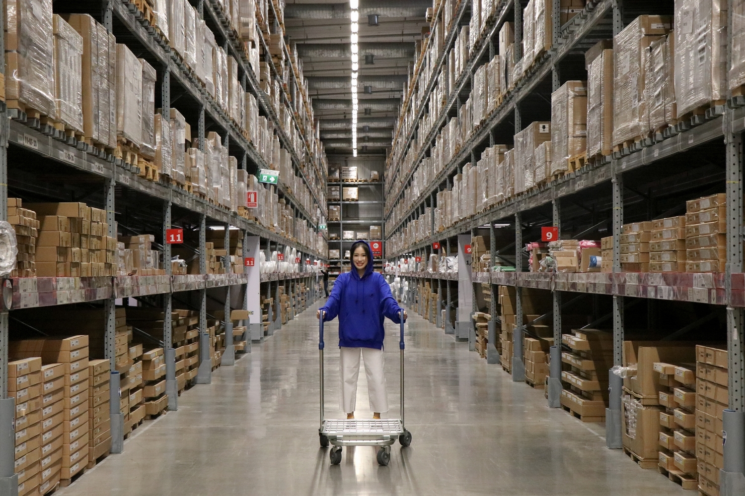 หลังจากที่พาทุกคนทัวร์เลือก 10 เฟอร์นิเจอร์อิเกียที่ชอบแล้ว ไกด์สาวของเราก็ขอพักถ่ายรูปสนุกๆ ที่มุมโกดังสุดฮิตตรงนี้เสียหน่อย เธอเข็นรถเข็นนำพวกเราไปด้วยพลังเหลือเฟือ ดูไม่เหน็ดเหนื่อยกับการพาเราเที่ยวครั้งนี้แม้แต่น้อย
