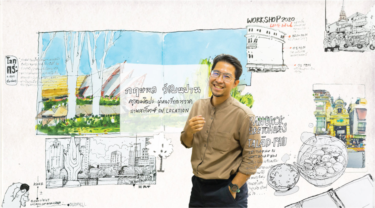 ช่วงที่ทำงานเป็นกราฟิกดีไซน์ เขาซื้อนิตยสาร a day มาอ่านเป็นประจำ จนไปสะดุดตากับคอลัมน์หนึ่งที่พาออกไปวาดรูปข้างนอก โดยกลุ่ม Bangkok Sketchers โหน่งตามไปสมัครเข้าร่วมกิจกรรม จึงถือจุดเริ่มต้นของการออกไปวาดเมือง on location แบบจริงจังเป็นครั้งแรก