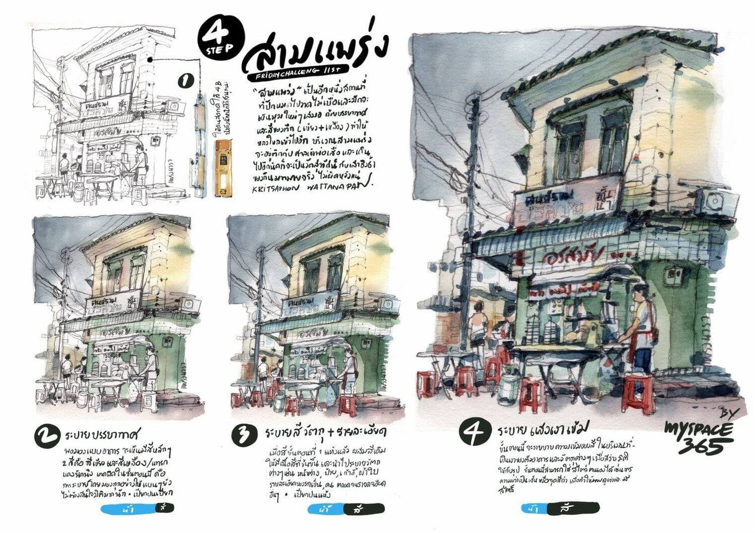 "เราคิดถึงหลายคนที่อยากวาดรูป แต่ไม่มีแบบ เขาน่าจะได้วาดอะไรบางอย่าง ซึ่งเราถ่ายภาพพวกตึกต่างๆ เอาไว้เยอะ ก็เลยลองดู แล้วคิดว่าชาเลนจ์ต้องเป็นวันศุกร์ไหม หลังจากทำงาน ก็มีเวลาวาดรูป เราเลยชวนมา Friday challenge ใครอยากวาดเชิญเลยครับ ไม่จำกัดเทคนิค ตอนแรกก็ไม่คิดถึงผลตอบรับ จากตอนแรกมี 2-3 คน มีแค่เพื่อนครูที่อยากวาดด้วย ก็กลับมีคนส่งภาพมาเรื่อยๆ ซึ่งมันได้เห็นทั้งเทคนิค เห็นความบริสุทธิ์ของแต่ละคน บางคนเห็นแค่ในโซเชียลไม่ได้คุยกันเลย ก็มาคุยกันผ่านรูปภาพ"