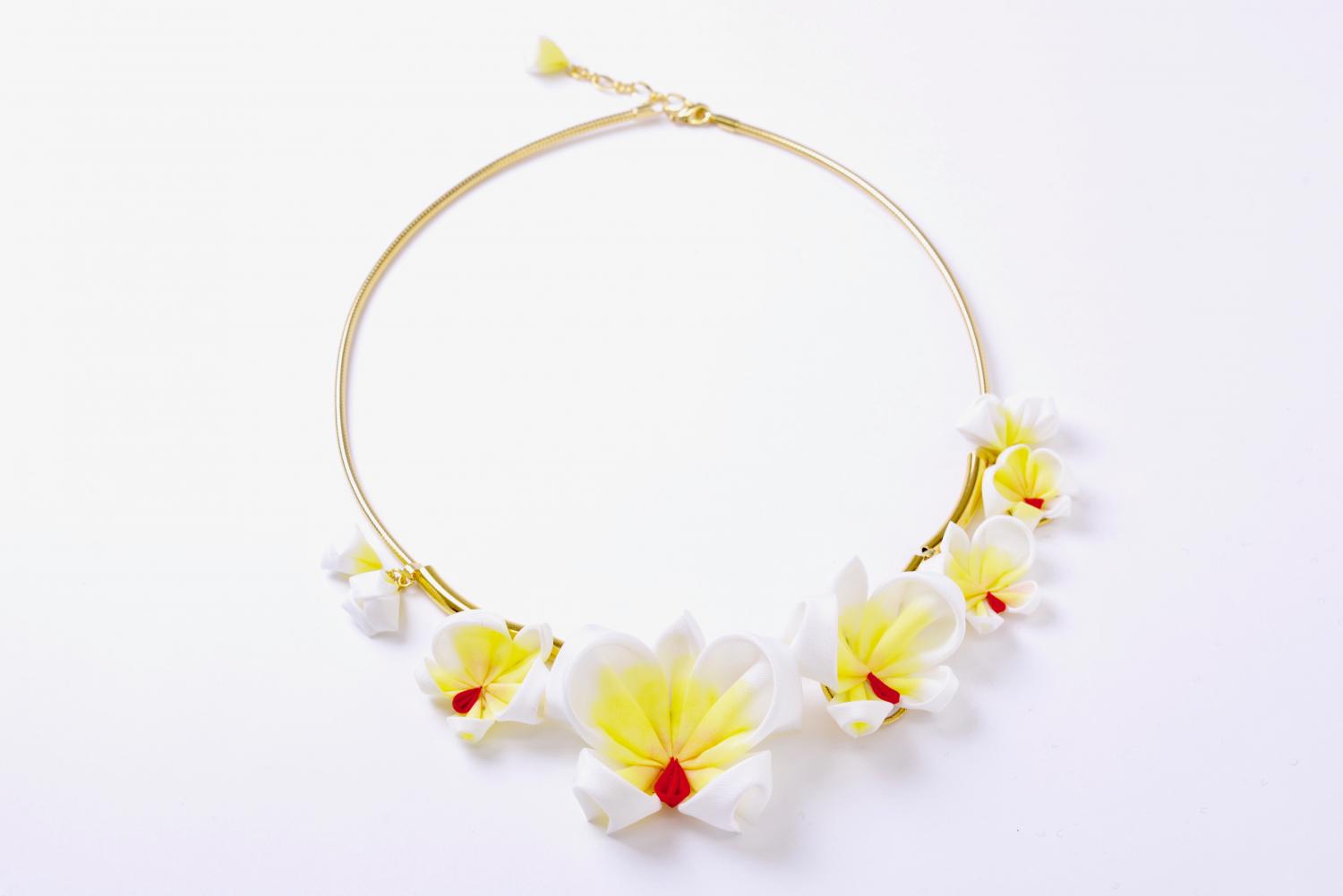 ผมชอบชิ้นสร้อยดอกกล้วยไม้ราตรีที่สุด ทีแรกเราตั้งใจที่จะใช้สึมามิเพื่อทำเครื่องประดับที่ไม่ต้องติดอยู่บนเสื้อผ้า ทว่ามีข้อจำกัดเรื่องการดีไซน์ เราจึงไม่สามารถสร้างงานเหล่านี้ออกมาได้ อย่างไรก็ตาม เบลได้ออกแบบสร้อยคอที่ง่ายแต่สวยงามให้เรา ซึ่งถือเป็นการสร้างจุดแข็งทางเทคนิคให้แก่ศิลปะสึมามิได้ทีเดียว