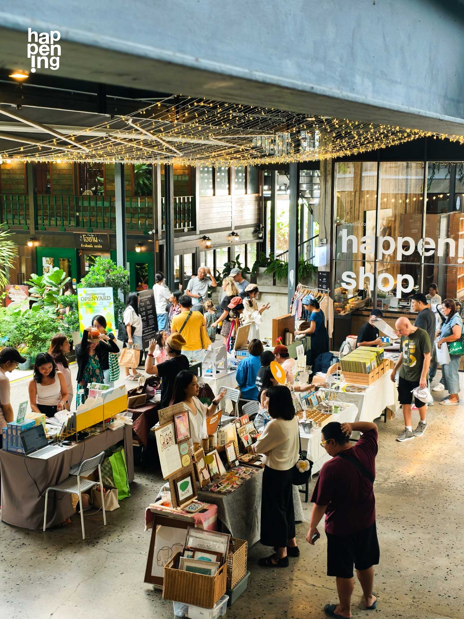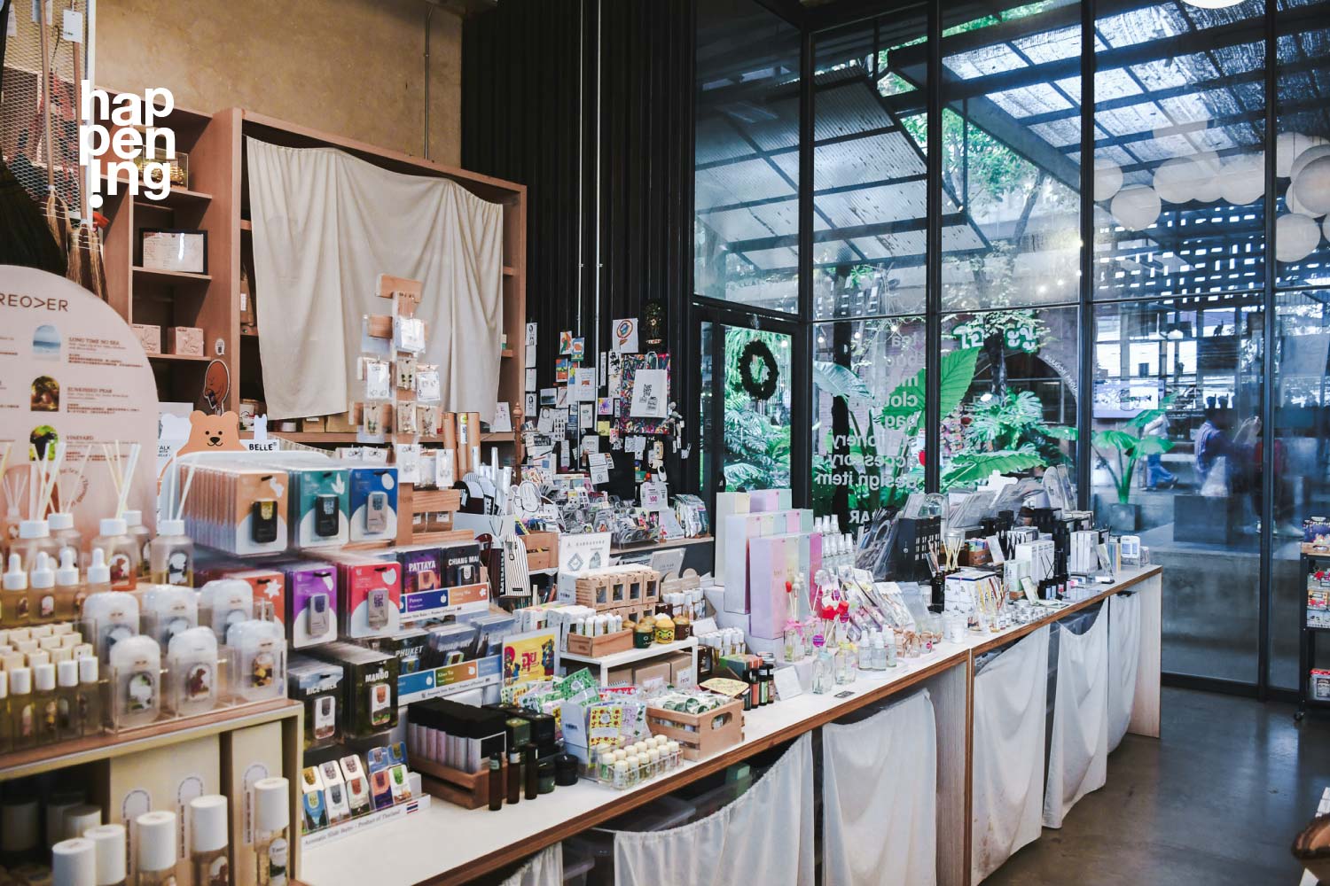 happening shop ก็เป็นหนึ่งร้านที่ได้รับการต้อนรับจากโครงการดาดฟ้า โดยอยู่ร่วมกับร้าน Chamony ที่พิถีพิถันเรื่องชาหอมกรุ่นอย่างอบอุ่นทีเดียว ร้าน happening shop สาขานี้นอกจากจะมีสินค้าจากศิลปินและแบรนด์ดีไซน์มาให้เลือกซื้อแล้ว ยังมีผลิตภัณฑ์สำหรับกลุ่มครอบครัว โดยเฉพาะเครื่องหอมให้เลือกมากมาย มุมหนังสือที่ถือว่าขาดไม่ได้ก็พิเศษกว่าสาขาอื่น ตรงที่มีมุมหนังสือเด็กที่รวบรวมหนังสือจากสำนักพิมพ์คุณภาพที่คุณพ่อคุณแม่คุ้นเคยกันดี ไปจนถึงหนังสือภาพภาษาอังกฤษมาให้เลือกซื้ออีกด้วย