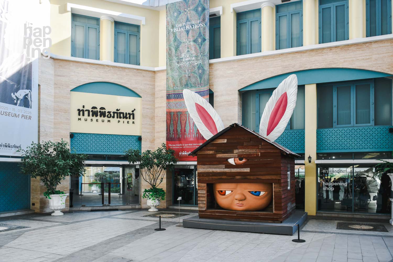 แต่ละนิทรรศการที่คัดสรรมาให้ชมมีทั้งความพิเศษและเรื่องราวที่น่าสนใจไม่เหมือนกับนิทรรศการไหนๆ ทำให้มาซ้ำได้ตลอดปี แล้วที่นี่ก็มีร้าน happening shop สาขาที่ 3 มาเปิดร่วมกับร้านกาแฟของท่าพิพิธภัณฑ์ด้วย แน่นอนว่าสาขานี้ก็ยังต้อนรับทุกคนด้วยโคมไฟกลมอันเป็นเอกลักษณ์ และมีสินค้าดีไซน์พร้อมกับหนังสือให้เลือกซื้อเช่นเดิม