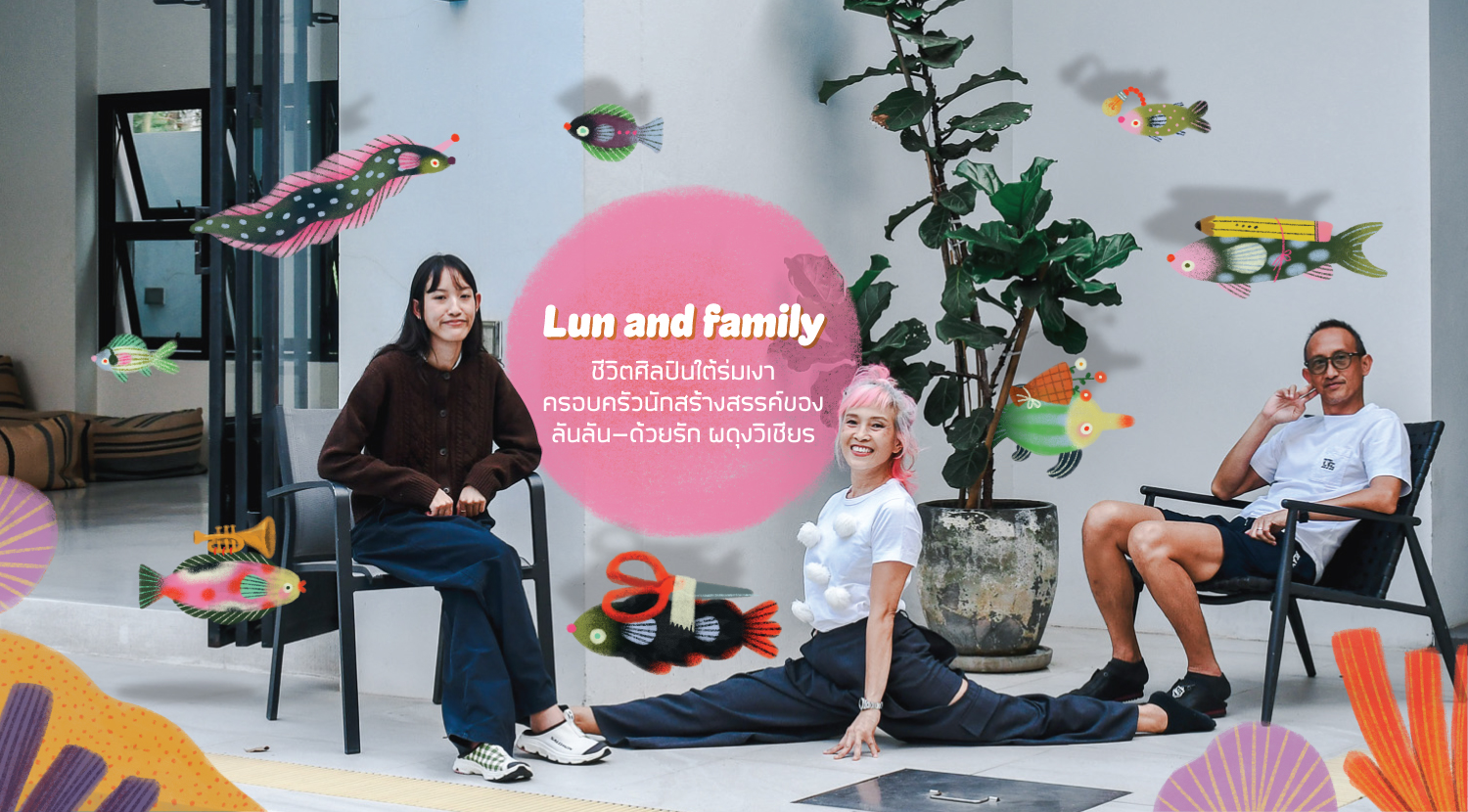 เนื่องจากลันลันกำลังมีโปรเจกต์ร่วมกับทาง happening เป็นการออกแบบ Key Visual ให้กับงาน MunMun happening Art Fest ประจำเดือนเมษายน เราจึงชักชวนเธอและครอบครัวมาพูดคุยถึงชีวิตข้างหลังบ้านและการเติบโตในร่มเงาของสองนักสร้างสรรค์ พวกเขามีวิธีเลี้ยงดูเด็กคนหนึ่งอย่างไรให้เติบโตไปเป็นศิลปินที่รักในงานศิลปะได้เช่นนี้