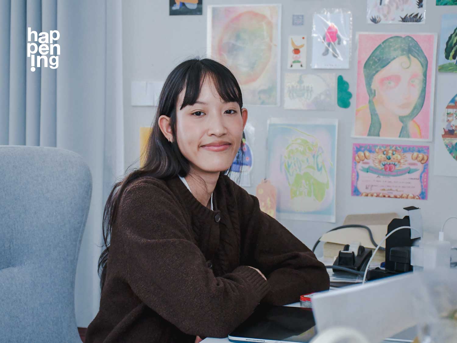 "ความสุขของเราคือการได้ทำสิ่งที่ชอบจริงๆ เวลาเห็นงานของเราไปอยู่ในสถานที่ต่างๆ มันรู้สึกประทับใจมาก โห งานของเราได้อยู่ตรงนี้นะ มีคนเห็นงานเยอะเลย มันคุ้มค่ามาก และการทำงานแบบนี้ไม่มีตารางตายตัว เราทำงานจากที่ไหนก็ได้ แถมยังได้เจอคนใหม่ๆ ระหว่างทาง ได้ต่อยอดคอนเนคชั่นไปเรื่อยๆ แต่ก็มีวันที่ลูกค้าไม่เข้าใจงานของเราบ้างนะคะ มันก็เป็นสิ่งที่ต้องจัดการระหว่างทางไป หรือพอเป็นฟรีแลนซ์ เวลามีงานไม่สม่ำเสมอ บางทีก็เครียด แล้วก็เผลอเอาตัวเองไปเปรียบเทียบกับคนอื่น สุดท้ายก็ต้องคอยจัดการความคิดตัวเองค่ะ"