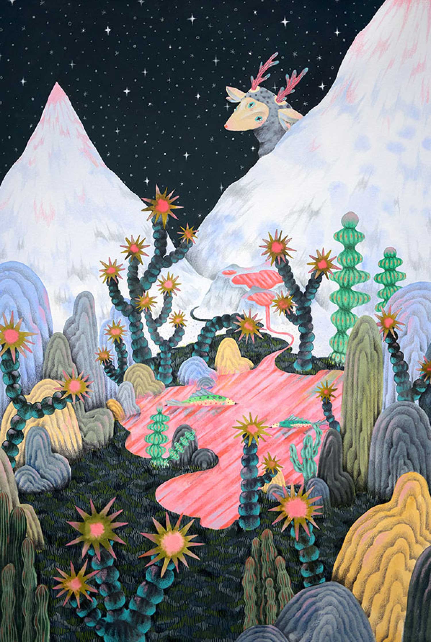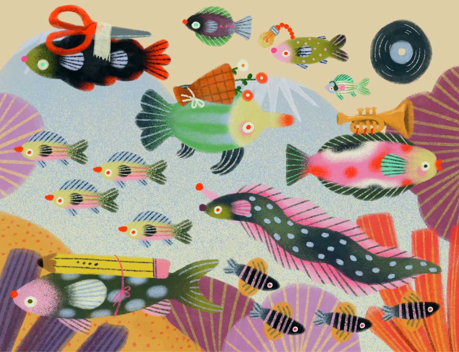 โดยในงานนี้ เธอจะพาทุกคนสำรวจโลกใต้ท้องทะเลไปพบกับปลาสีสันสดใส ในธีม Plenty of silly fishes in the sea. ลวดลายของปลาที่แตกต่างกันไปในฝูง สื่อถึงโอกาสมากมายที่รอเราอยู่ เป็นการเปรียบเปรยถึงชีวิต ผ่านลายเส้นน่ารักๆ และส่งต่อพลังงานดีๆ ให้กับผู้คน