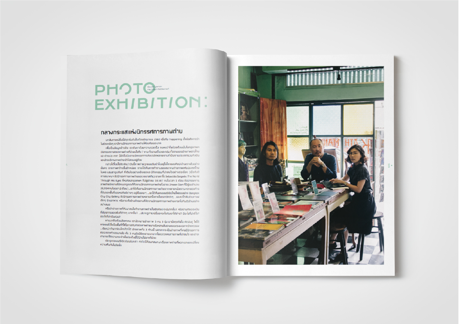 อีกหนึ่งหัวข้อที่เราต้องพูดถึงภายในเล่ม ด้วยการสังเกตเห็นว่าช่วงนี้ บ้านเราในแต่ละเดือนเริ่มมีนิทรรศการภาพถ่ายจัดขึ้นจำนวนมากขึ้นเรื่อยๆ อะไรคือสาเหตุของปรากฏการณ์นี้ และมันจะนำไปสู่สิ่งใด เราได้เชิญผู้เชี่ยวชาญทั้ง 3 ท่าน อย่าง มานิต ศรีวานิชภูมิ เจ้าของโฟโต้แกลเลอรี คัดมันดู, ผ้าป่าน-สิริมา ไชยปรีชาวิทย์ ผู้ดูแลแกลเลอรีของโครงการ The Jam Factory และ เล็ก เกียรติศิริขจร ช่างภาพมากฝีมือ มาร่วมวงกันแลกเปลี่ยนทัศนในหัวข้อนี้