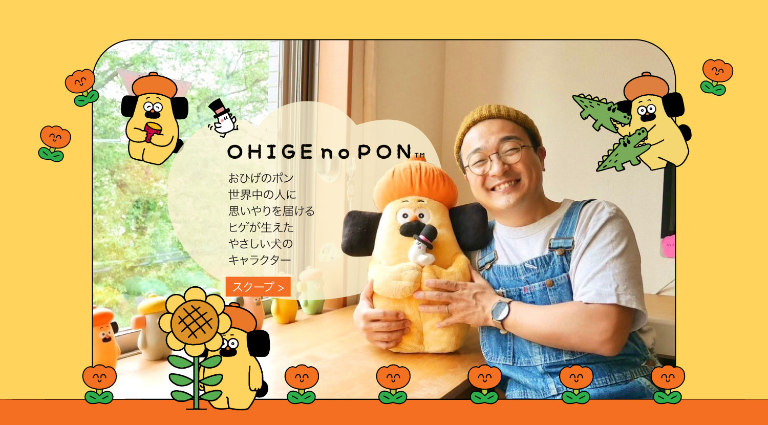 たくさんの日本のキャラクターの中から、困っている人を助け、ヒゲとやさしさでみんなから愛されるおヒゲを生やした黄色い犬のポンちゃん率いる『おひげのポン』を紹介