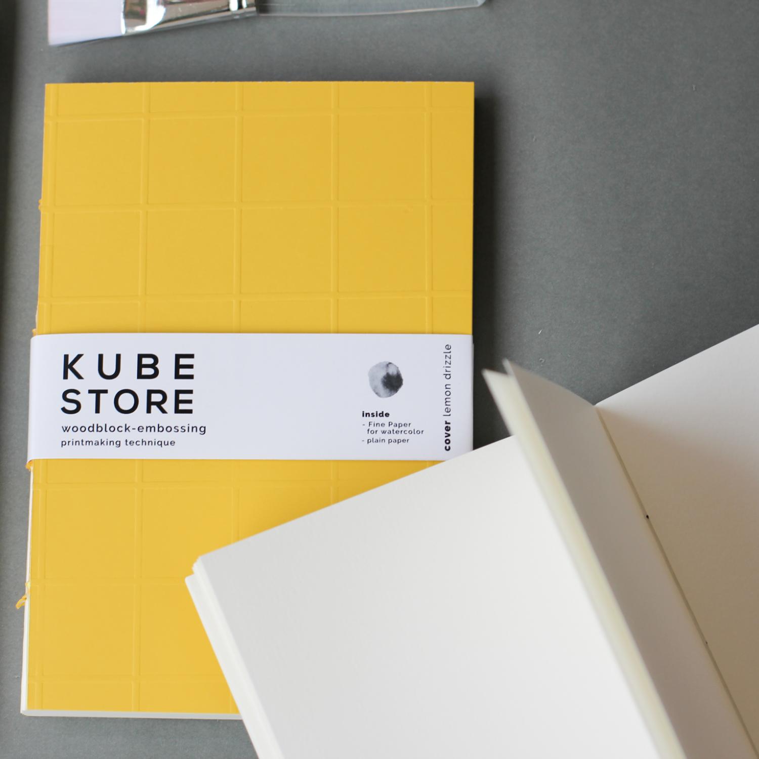 สมุด 'kubebook' ปกสีเหลือง (Lemon Drizzle) เหมาะสำหรับคนชอบวาดสีน้ำ, สเก็ตช์ภาพ, วาดภาพด้วยเทคนิคต่างๆ ไม่ว่าจะสีน้ำ, Copic Sketch, สีโปสเตอร์, งานดรอว์อิ้งต่างๆ