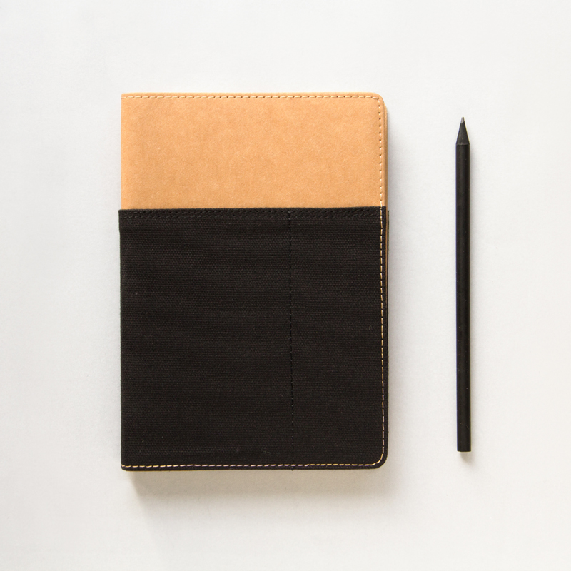 สมุดบันทึก B6-GK ปกปะเก็นและผ้าแคนวาส ปกสีดำ