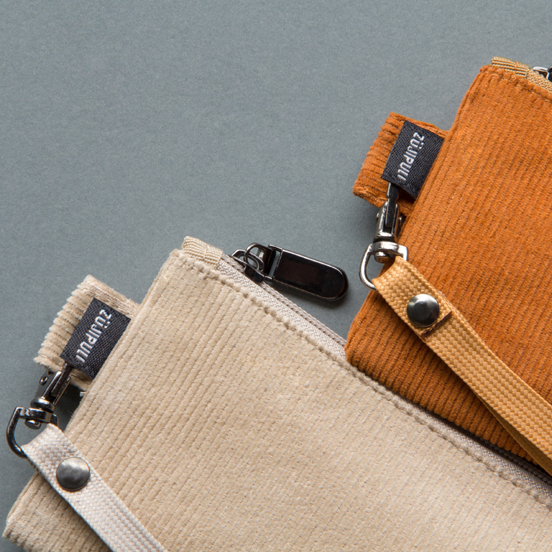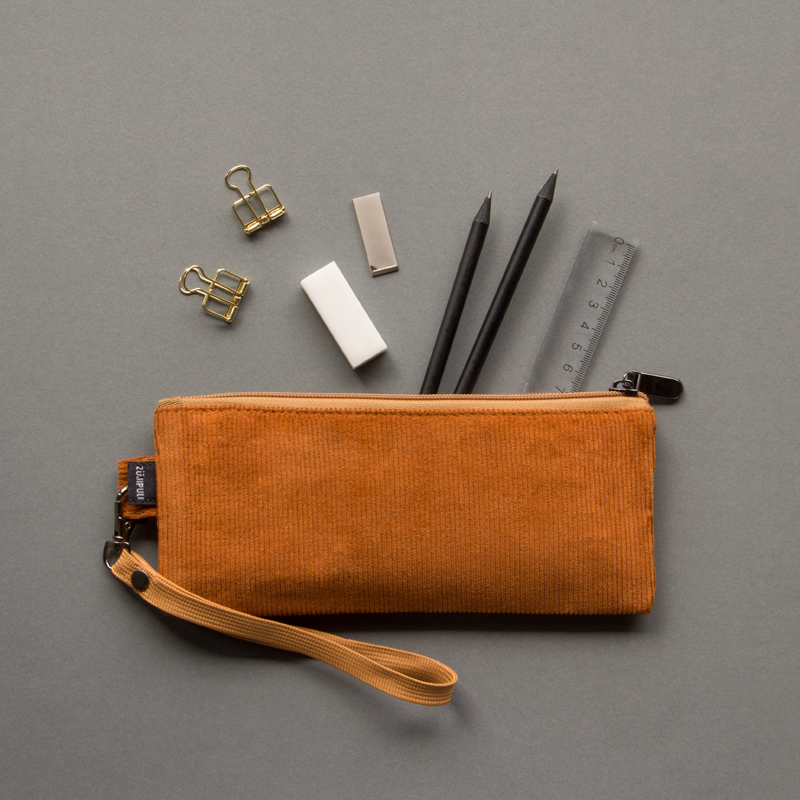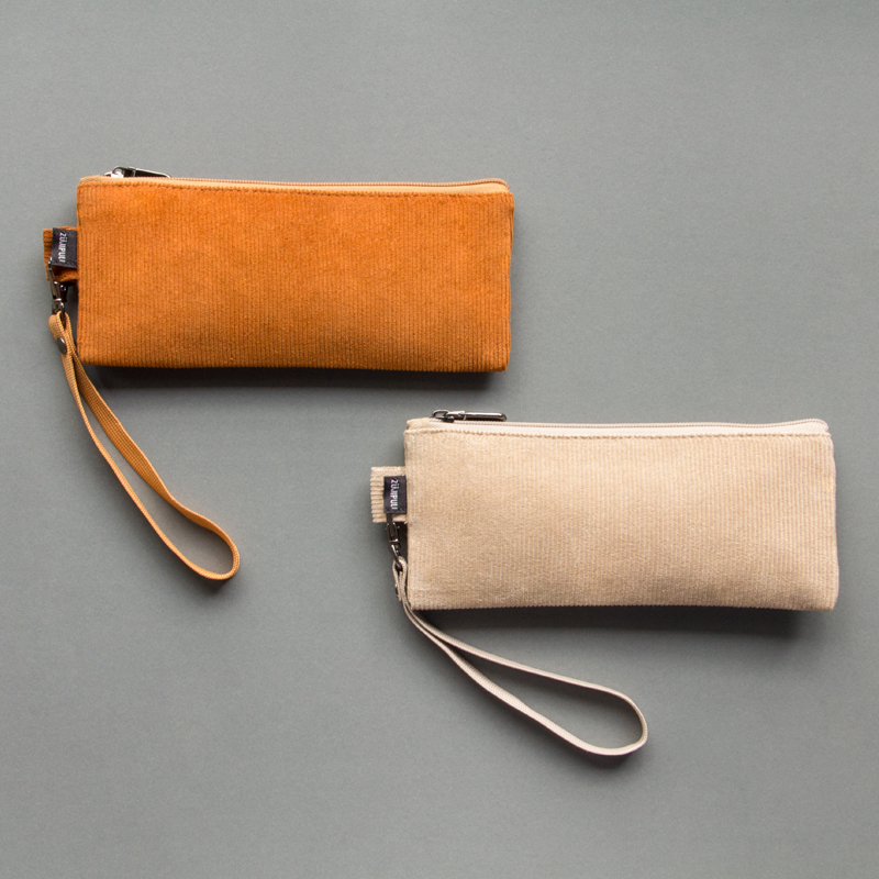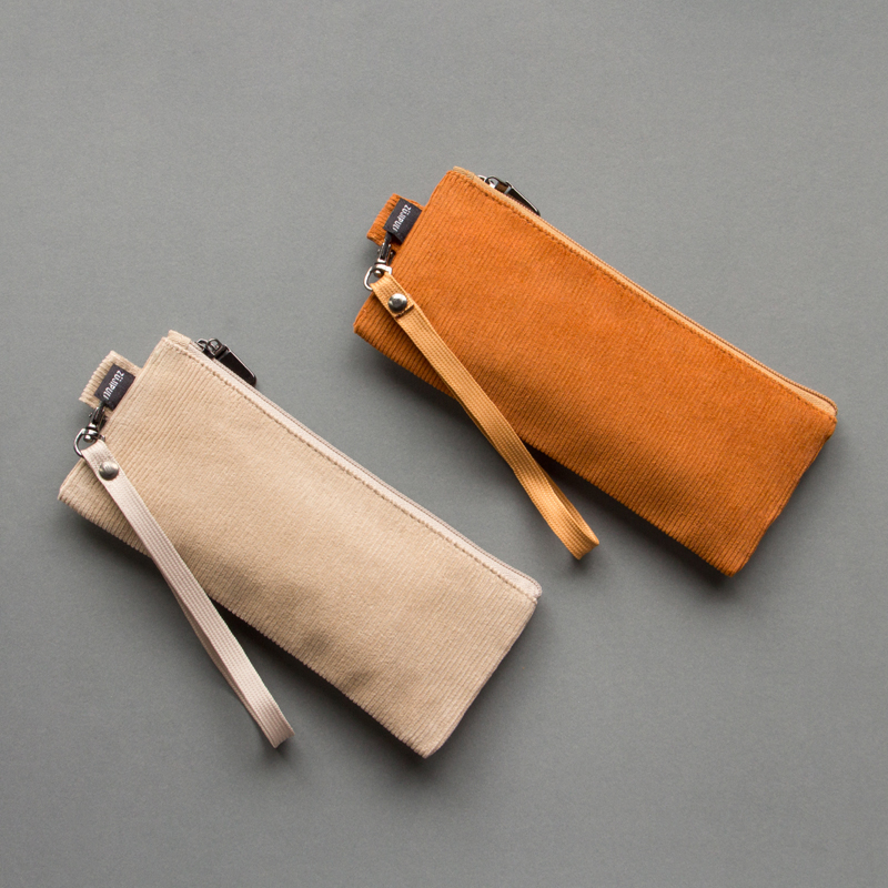 กระเป๋าผ้าลูกฟูกดีไซน์เรียบเท่ ขนาดกะทัดรัด มาพร้อมสายคล้องข้อมือกันเลื่อนหลุด สำหรับเครื่องเขียน อุปกรณ์สำนักงาน เช่น ปากกา ดินสอ พูกัน เป็นต้น
