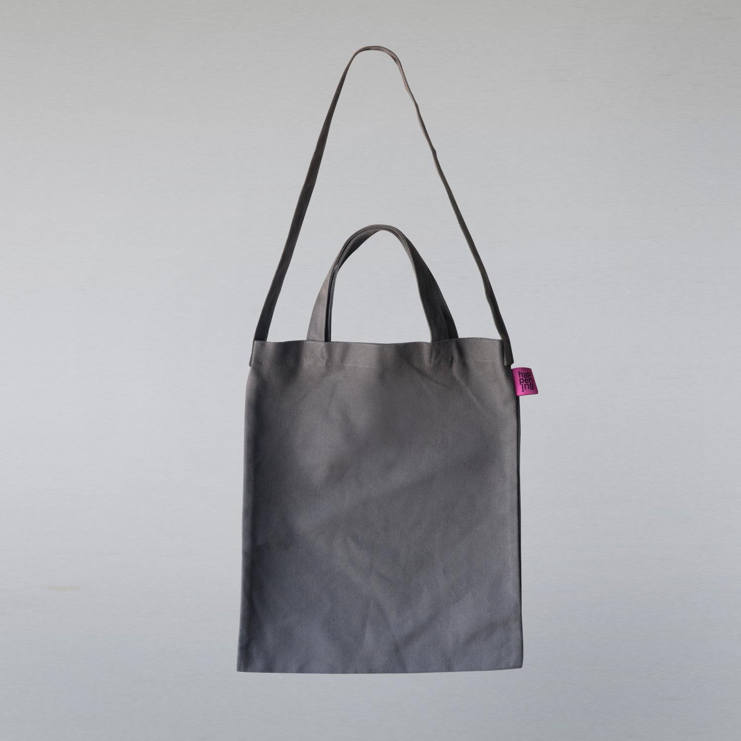 กระเป๋าผ้าแคนวาสสีเทา ไม่มีสกรีน ความกว้าง x ความยาว : 13 x 5 นิ้ว