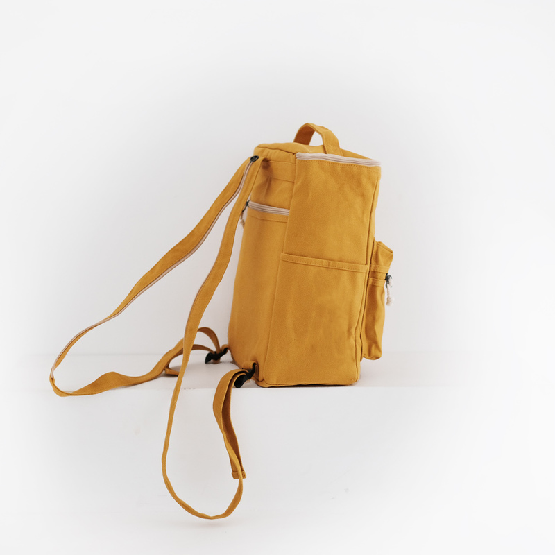 กระเป๋าผ้าแคนวาสทรงสี่เหลี่ยมผืนผ้า ขนาดกะทัดรัด ที่ยังคงคอนเซปต์การใช้งานที่หลากหลาย มีช่องใส่ขวดน้ำด้านข้าง ตอบสนองความต้องการของนักเดินทาง วัสดุที่ใช้ด้านในเป็นผ้าที่สามารถกันน้ำซึมเข้าได้ถึง 60% ไม่เพียงเท่านี้ ยังเสริมฟองน้ำซับด้านในอีกหนึ่งชั้น เพื่อป้องกันการกระแทกได้ในระดับหนึ่งอีกด้วย