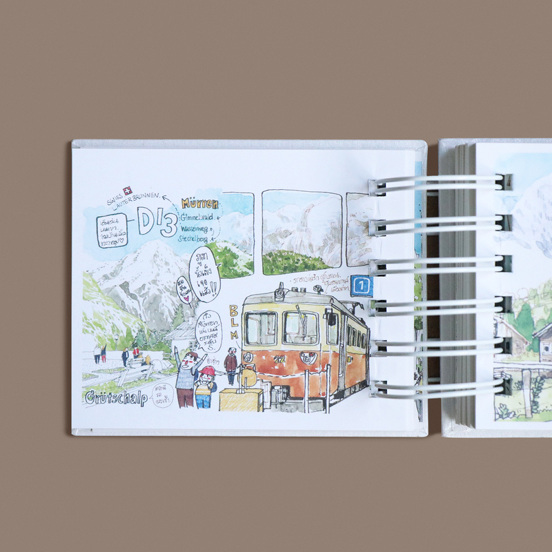 หยอย-ศศิ วีระเศรษฐกุล อดีตสถาปนิกที่ค้นพบความสุขในการเป็นนักวาดภาพประกอบและสร้างสรรค์งานหนังสือภาพ เจ้าของเพจการเดินทางของพระจันทร์ ได้บันทึกการเดินทาง 34 วันในยุโรปผ่านลายเส้นสะอาดตกแต่งด้วยสีน้ำละมุน นอกจากจะมีรายละเอียดของผู้คน อาหาร ธรรมชาติ ถนนหนทาง และร้านรวงต่างๆ จากประเทศฝรั่งเศส สวิสเซอร์แลนด์ อิตาลี ออสเตรีย และเยอรมันแล้ว ด้วยพื้นฐานของสถาปนิกทำให้การถ่ายทอดมุมมองเมืองผ่านสายตาของเขาสวยงามและมีชีวิตชีวา มีรายละเอียดในภาพที่สามารถเปิดชมได้อย่างเพลิดเพลินมากทีเดียว