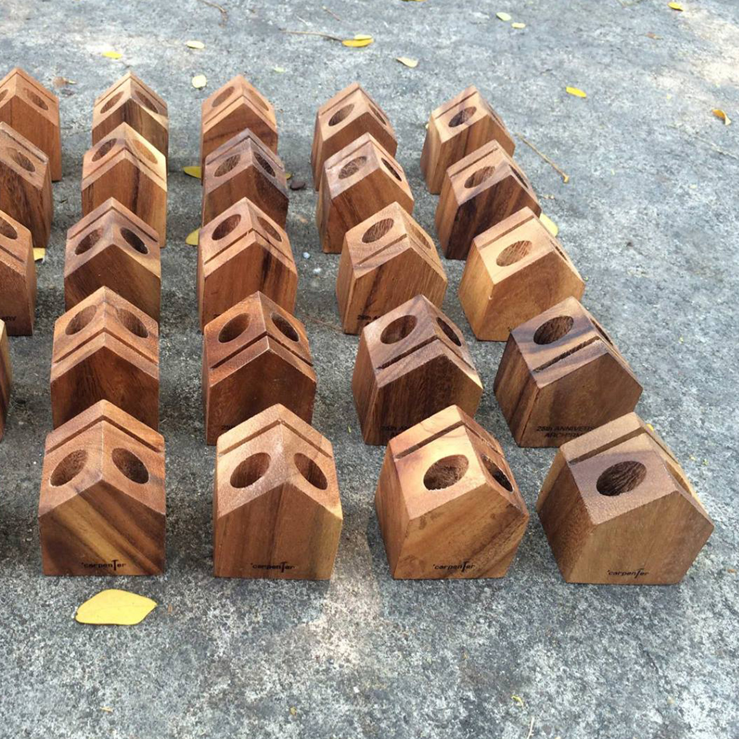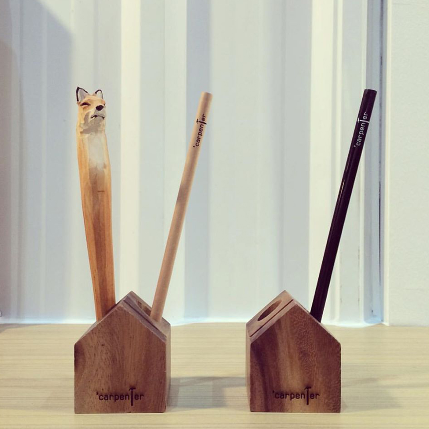 ที่เสียบปากกาและนามบัตรรูปบ้าน ผลิตจากเศษไม้ฉำฉาที่เหลือจากกระบวนการผลิตเฟอร์นิเจอร์ จึงเป็นมิตรต่อสิ่งแวดล้อม และสร้างคุณค่าทางใจให้กับผู้ใช้งาน เป็นทั้งที่เสียบปากกา และนามบัตรในชิ้นเดียวกัน ตอบสนองประโยชน์ใช้สอย และเพิ่มความเก๋ไก๋บนโต๊ะทำงาน