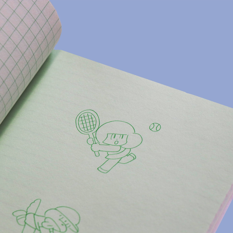 สมุดบันทึกชมพูลายประตู ด้านในมีทั้งเส้น ทั้งตาราง มีสีอ่อนโยนบางเบา และมีหน้าที่ไม่มีเส้น ขนาด A5