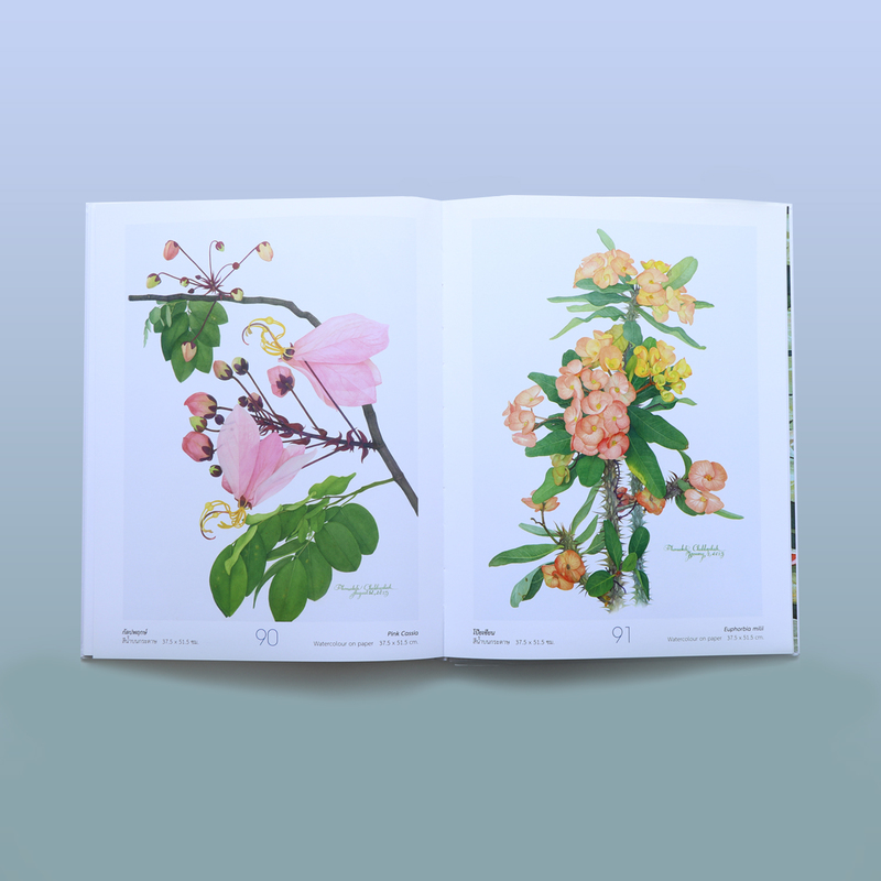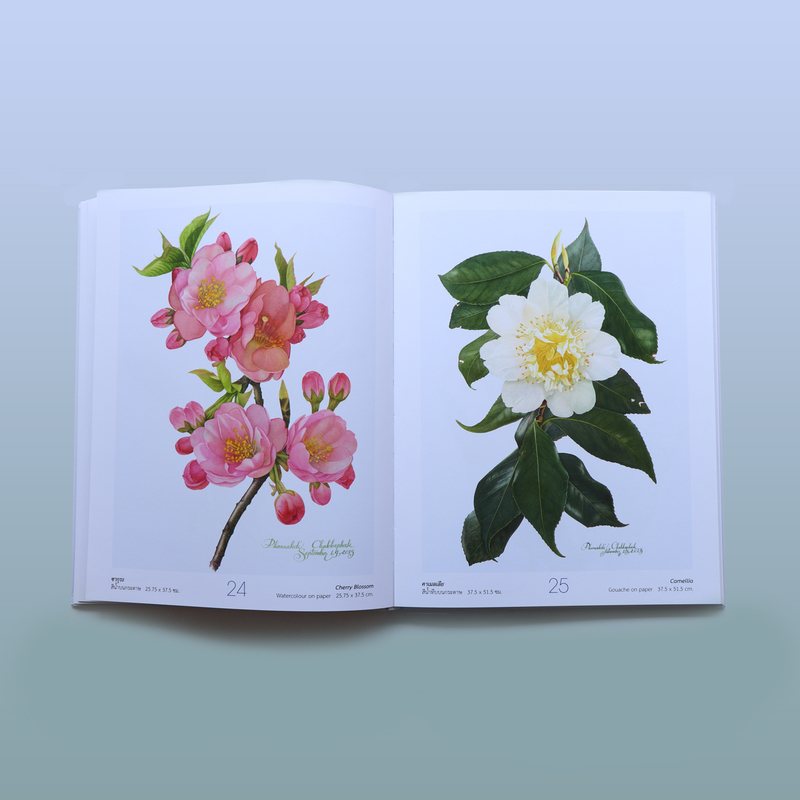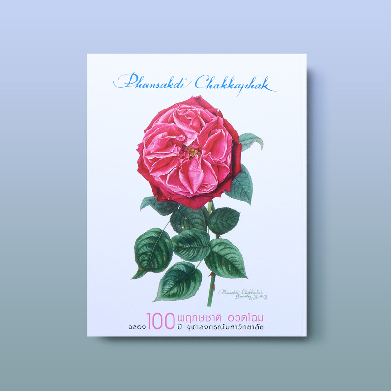 หนังสือนิทรรศการภาพเขียนพฤกษชาติ '๑๐๐ พฤกษชาติอวดโฉม ฉลอง ๑๐๐ ปี จุฬาลงกรณ์มหาวิทยาลัย : 100 Botanical Beauties Celebrating 100 Years of Chulalongkorn University' ผลงานโดย พันธุ์ศักดิ์ จักกะพาก (Phansakdi Chakkaphak)
