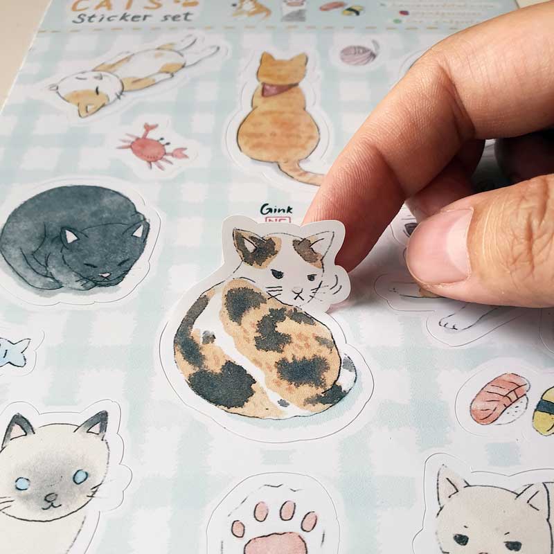 สติกเกอร์แผ่นไดคัท ขนาด A5 ลายแมว