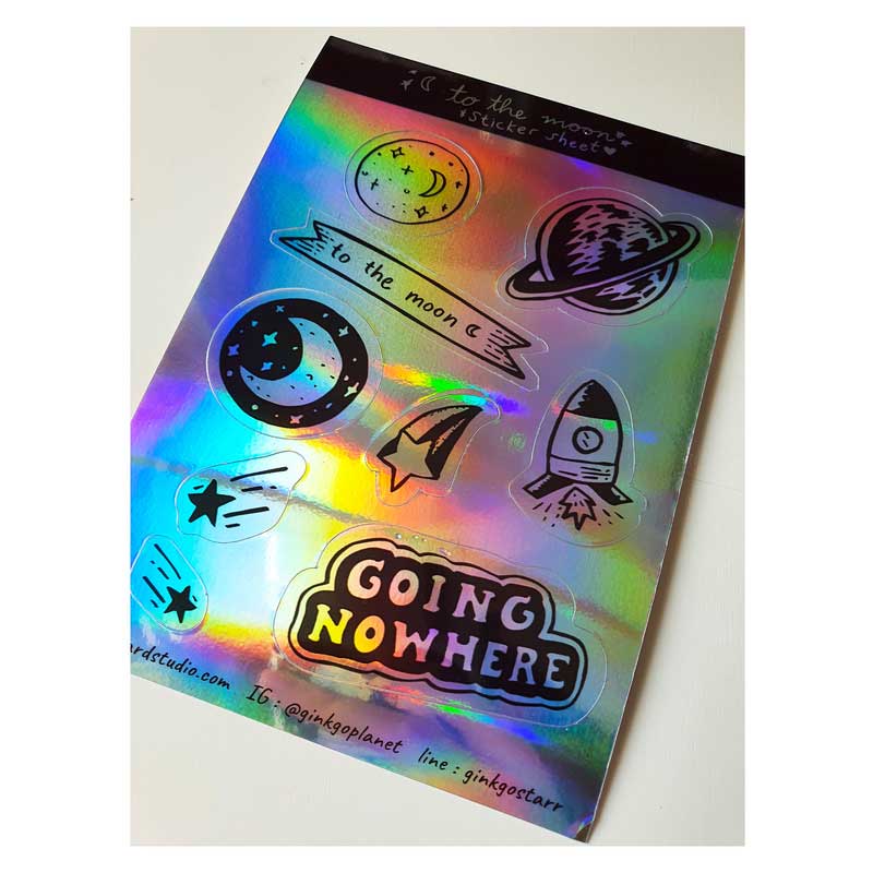 สติกเกอร์แผ่นไดคัท ขนาด A6 ลายอวกาศ Hologram ไดคัทเรียบร้อย สามารถลอกออกแล้วติดตกแต่งได้เลย