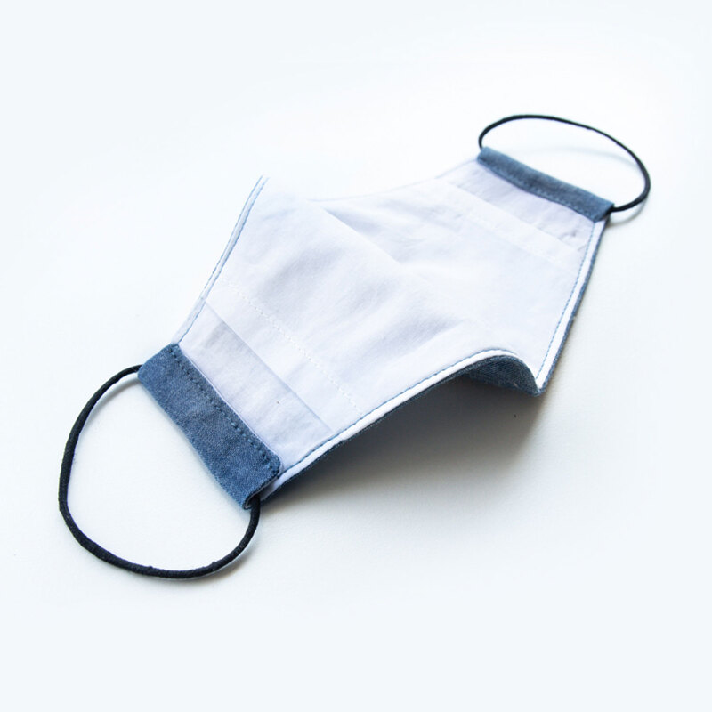 หน้ากากผ้าฝ้าย 100% ตัดเย็บด้วยความประณีตและใส่ใจ ประกอบด้วยผ้า 2 ชั้น ชั้นนอกเป็นผ้าฝ้าย Denim: Indigo Chambray ให้ความรู้สึกแบบผ้ายีนส์แต่ผิวสัมผัสนุ่มไม่อึดอัด และชั้นด้านในเป็นผ้าฝ้ายมัสลินที่ทำหน้าที่กรองได้อย่างดีเยี่ยม สายรัดกำหนดความยาวได้ด้วยตัวเอง มีให้เลือก 2 สี คือ สายสีดำหรือสายสีส้ม ด้านในของหน้ากากมีช่องสำหรับสอดแผ่นกรองเพิ่มเติมได้เองด้วย