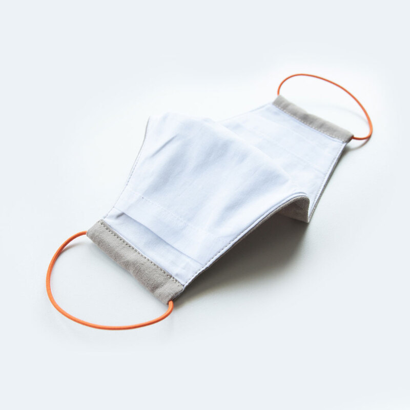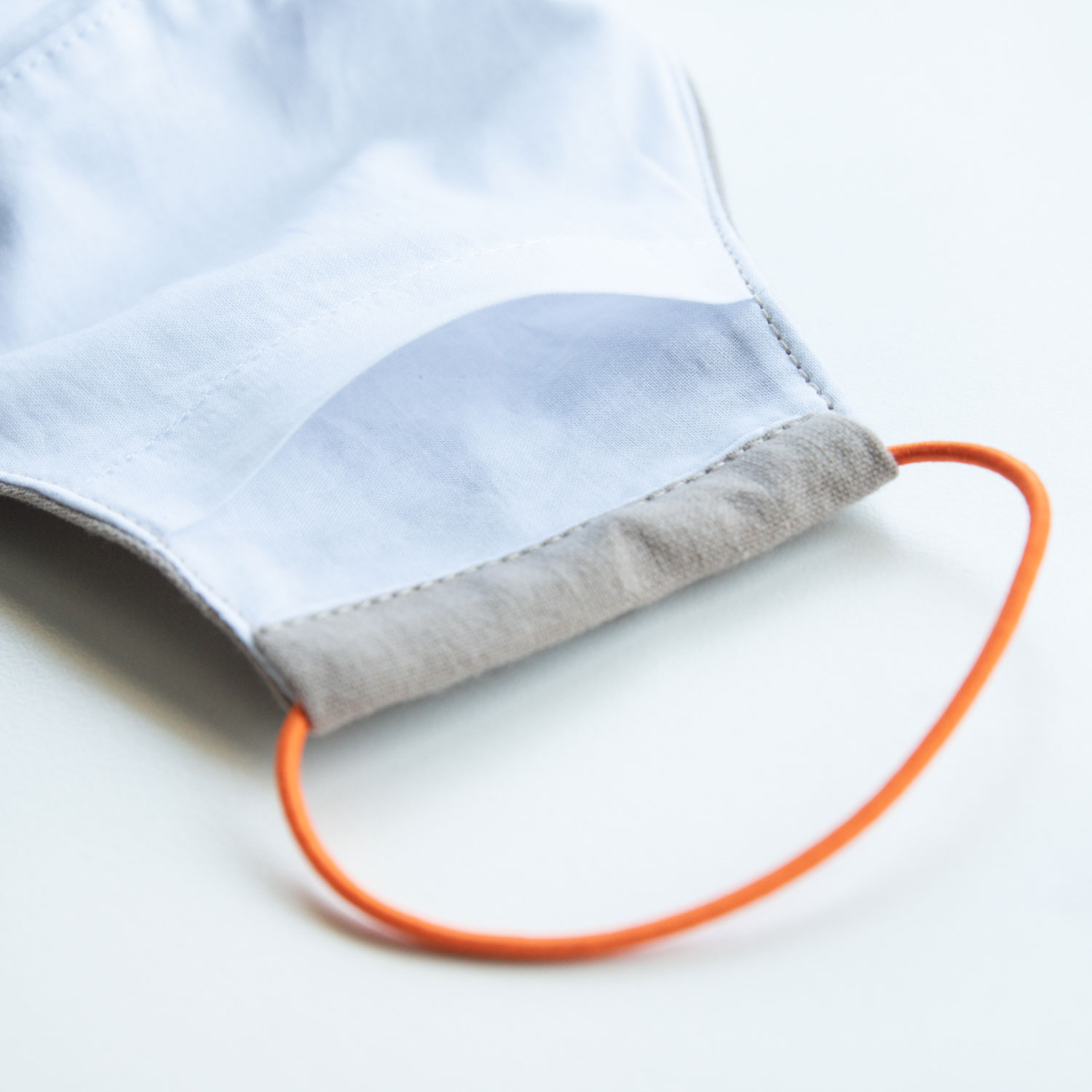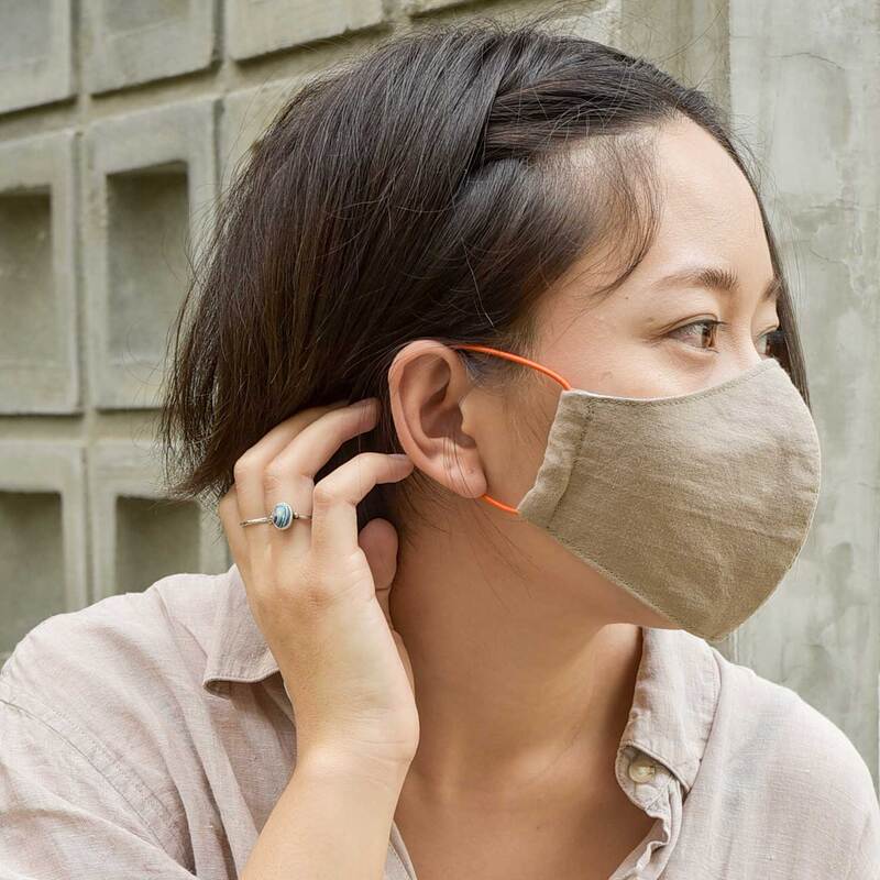 หน้ากากผ้าฝ้าย 100% ตัดเย็บด้วยความประณีตและใส่ใจ ประกอบด้วยผ้า 2 ชั้น ชั้นนอกเป็นผ้าฝ้ายเนื้อดีสีเบจโทนสุขุม และชั้นด้านในเป็นผ้าฝ้ายมัสลินที่ทำหน้าที่กรองได้อย่างดีเยี่ยม สายรัดกำหนดความยาวได้ด้วยตัวเอง มีให้เลือก 2 สี คือสายสีดำหรือสายสีส้ม ด้านในของหน้ากากมีช่องสำหรับสอดแผ่นกรองเพิ่มเติมได้เองด้วย