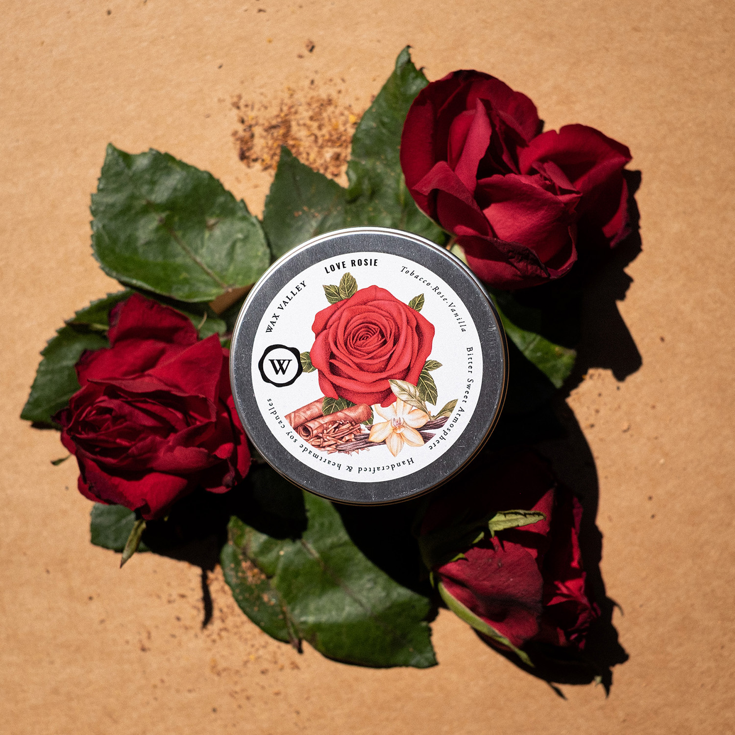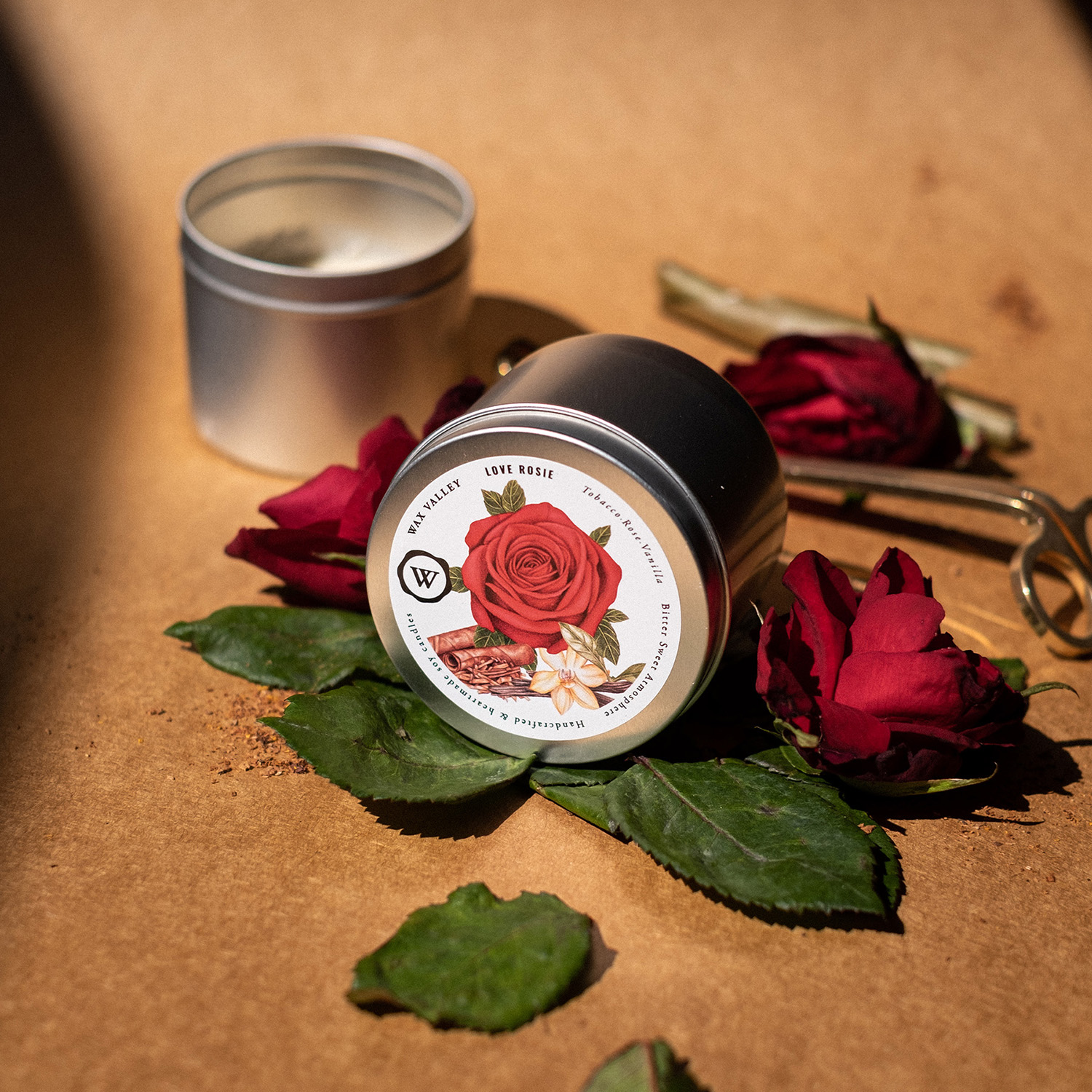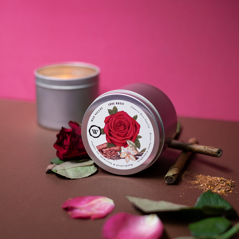 เทียนหอมไขถั่วเหลืองธรรมชาติ กลิ่น Love Rosie ขนาดกระปุก Portable Tin ส่วนผสมลงตัวของใบยาสูบ ดอกกุหลาบ และวานิลลา