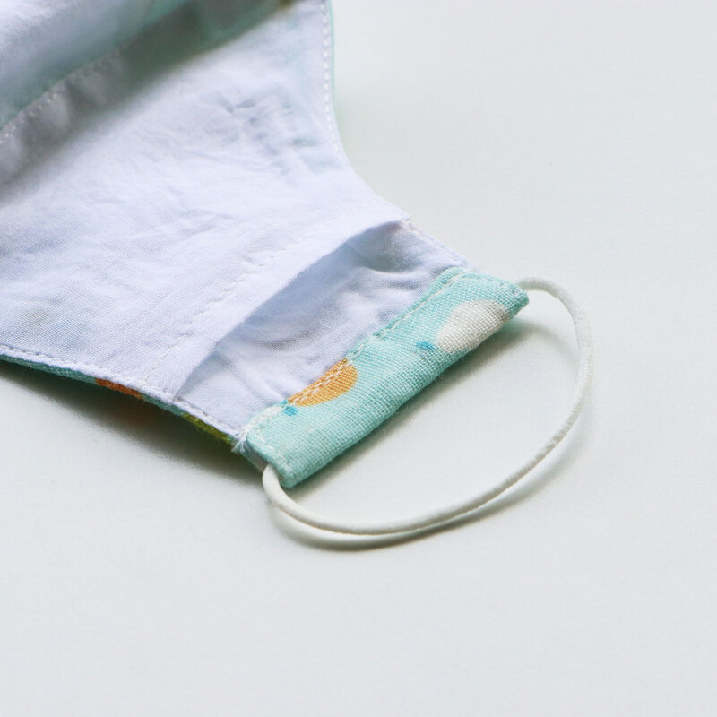 หน้ากากผ้าฝ้ายมัสลินเคลือบสารสะท้อนน้ำและสารแอนตี้แบคทีเรีย สำหรับเด็ก ประกอบด้วยผ้า 3 ชั้น ชั้นนอกเป็นผ้าฝ้ายญี่ปุ่นเคลือบสารสะท้อนน้ำและสารแอนตี้แบคทีเรีย ส่วน 2 ชั้นด้านใน เป็นผ้าฝ้ายมัสลินที่ทำหน้าที่กรองได้อย่างดีเยี่ยม สายคล้องนุ่มและเบา ไม่ทำให้เจ็บหลังหู