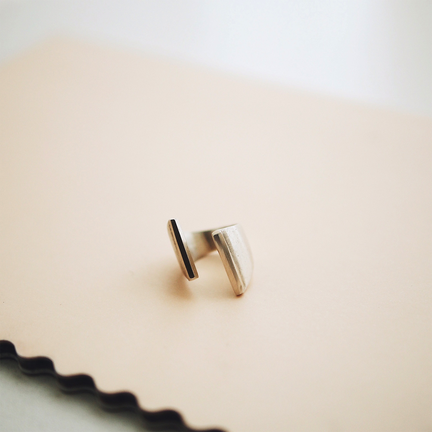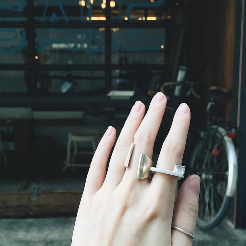 แหวนเนื้อเงินแท้ ที่ได้รับแรงบันดาลใจจากเส้นคู่ขนาน และเหลี่ยมของคริสตัล เป็นแหวนที่ปรับไซส์ได้
