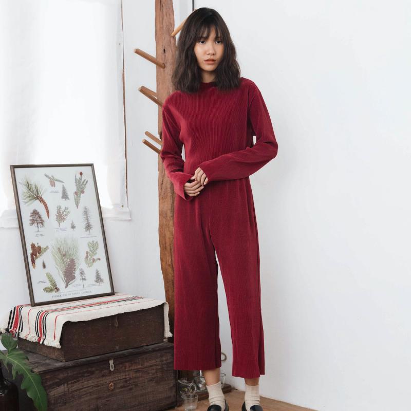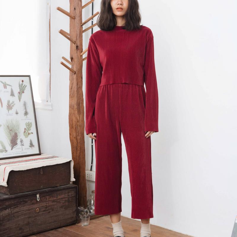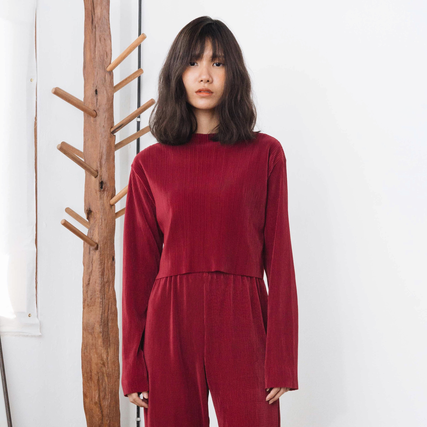 เสื้อแขนยาวตัวสั้นผ้าอัดพลีท