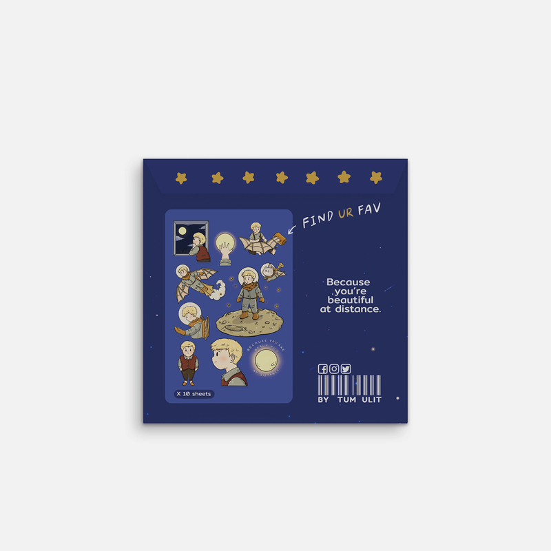 ขนาดซอง 4 x 4 นิ้ว ภายในซองประกอบไปด้วยสติกเกอร์ 10 ชิ้น ต่อแพ็ค