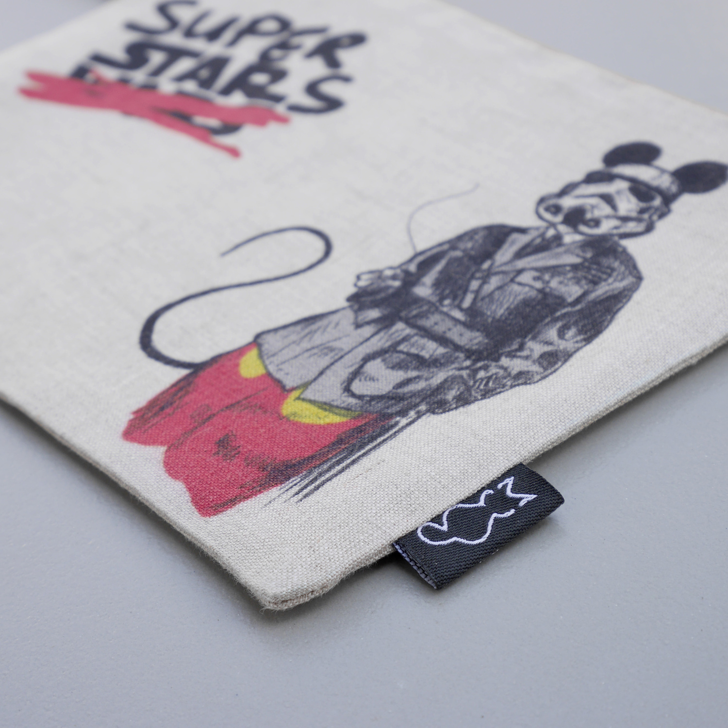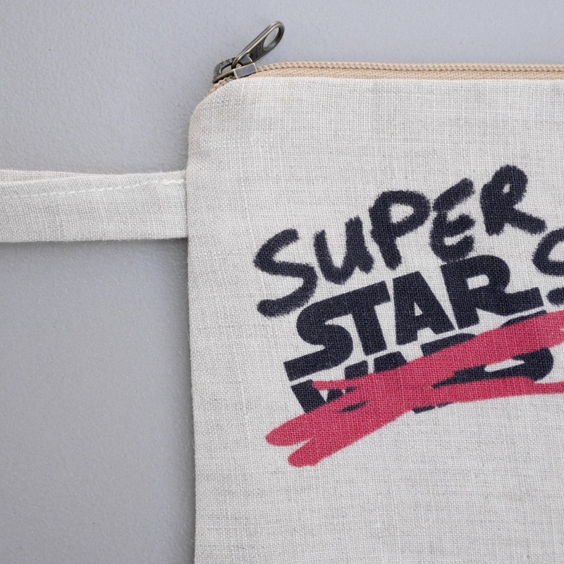 Clutch Bags Size M Linen Bag Printing Super Stars in Natural Color