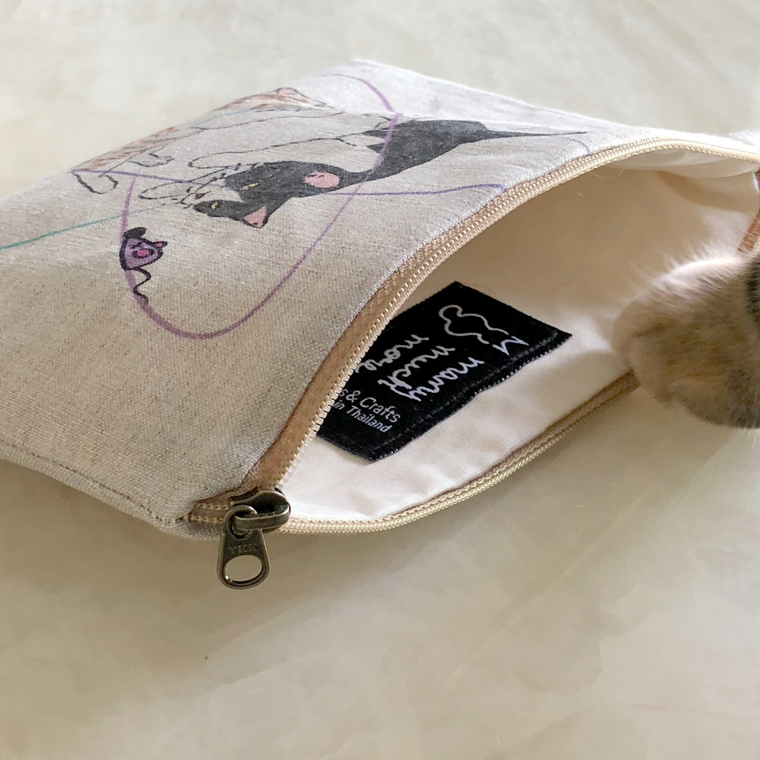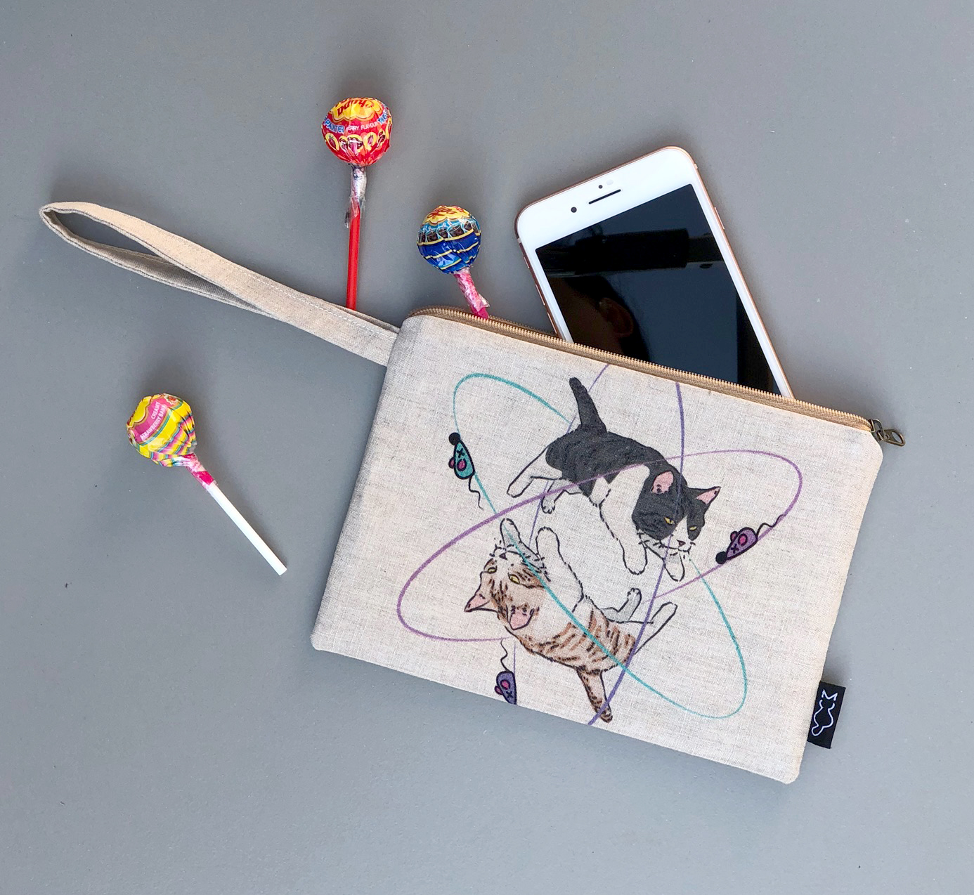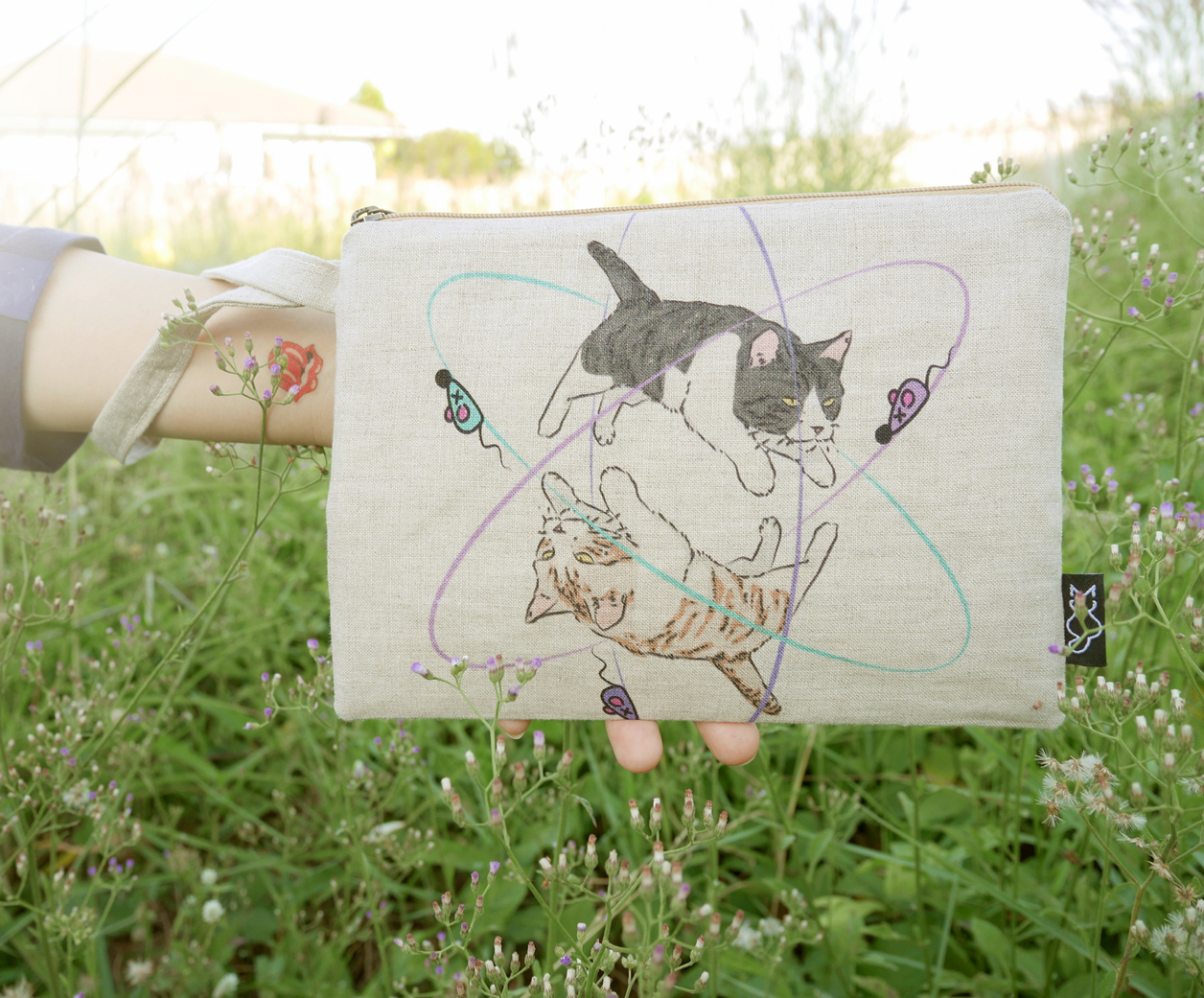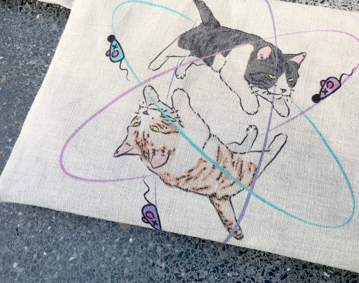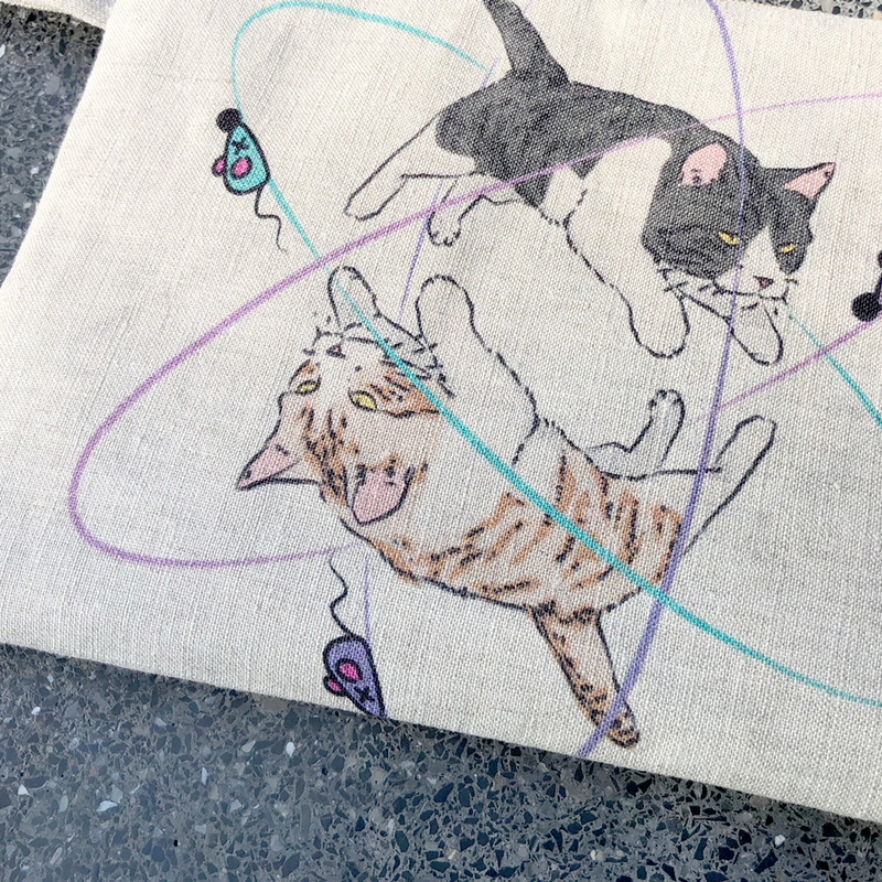 Clutch Bags Size M Linen Bag Printing Atom Cat in Natural Color