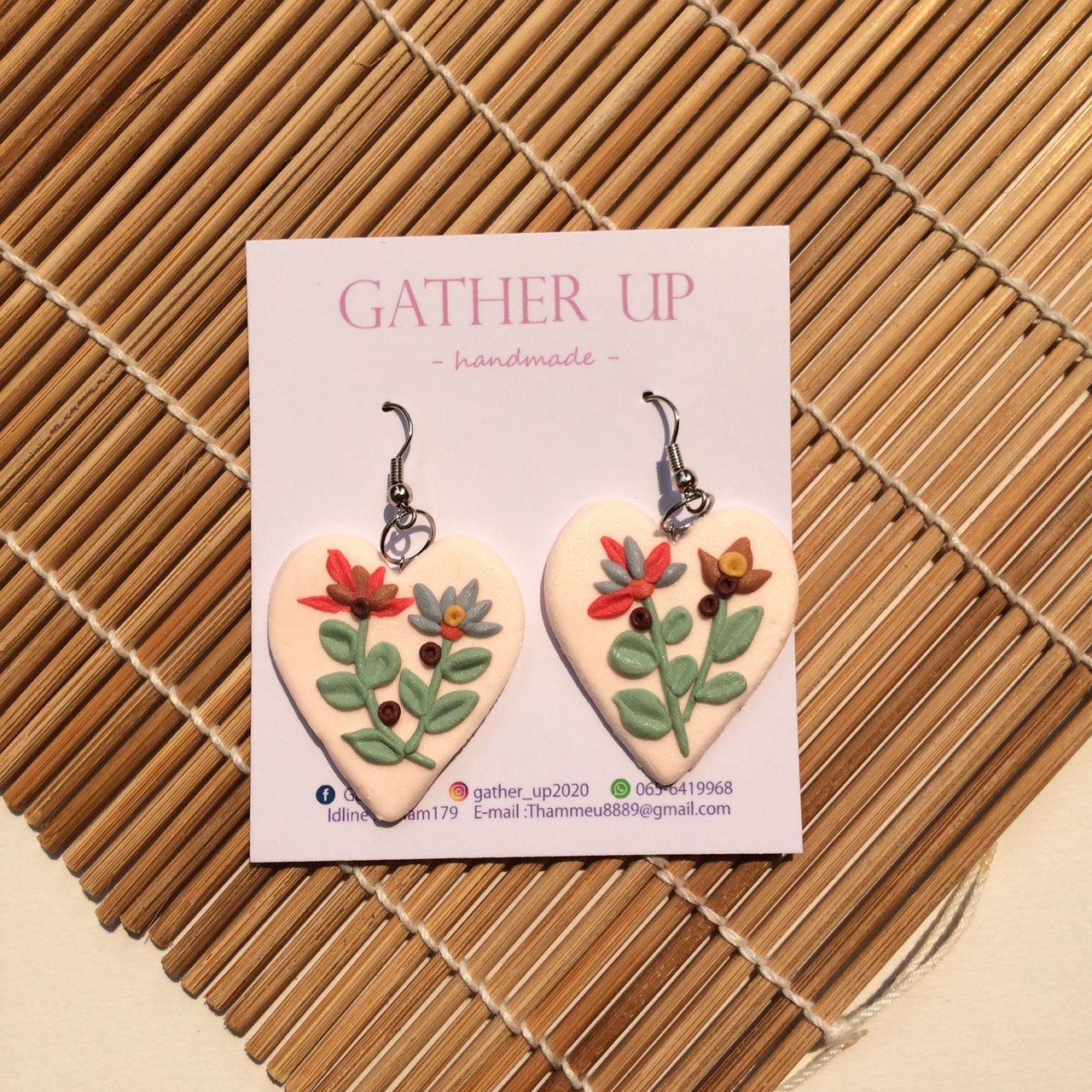 Earring flowers soft clay handmade