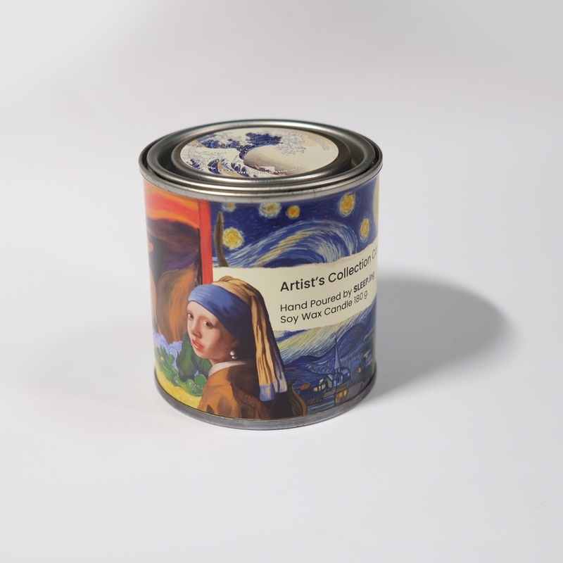 เทียนหอมแบรนด์ SLEEP.ing Artist Candle Collection เทียนหอมที่ตั้งใจนำเสนอประสบการณ์ใหม่ๆ ในการเสพงานศิลป์ ที่นอกจากการใช้ตาดูแล้ว ยังได้ใช้ประสาทสัมผัสทางด้านกลิ่น ในการรับรู้กลิ่นของบรรยากาศในภาพวาดแต่ละภาพ รวมถึงแพคเกจที่ทำออกมาในรูปลักษณ์ของแพนสีน้ำและถังสี เพิ่มสีสัน ความน่ารัก และเรื่องราวในระหว่างการใช้งาน ทำให้ในภาพงานศิลป์มีการรับรู้ได้มากกว่าแค่การมองเห็น ซึ่งผลงานเทียนหอมสุดน่ารักที่มีให้เลือกถึง 9 ภาพที่มาพร้อมกลิ่นที่ต่างกัน จากศิลปินดังระดับโลก