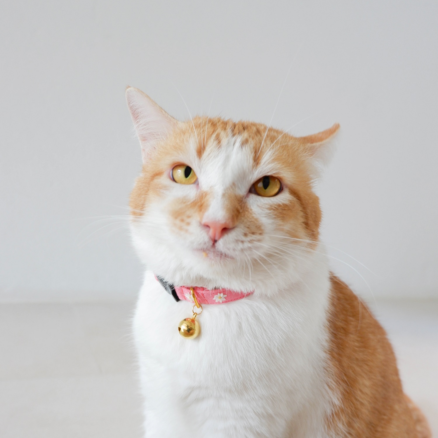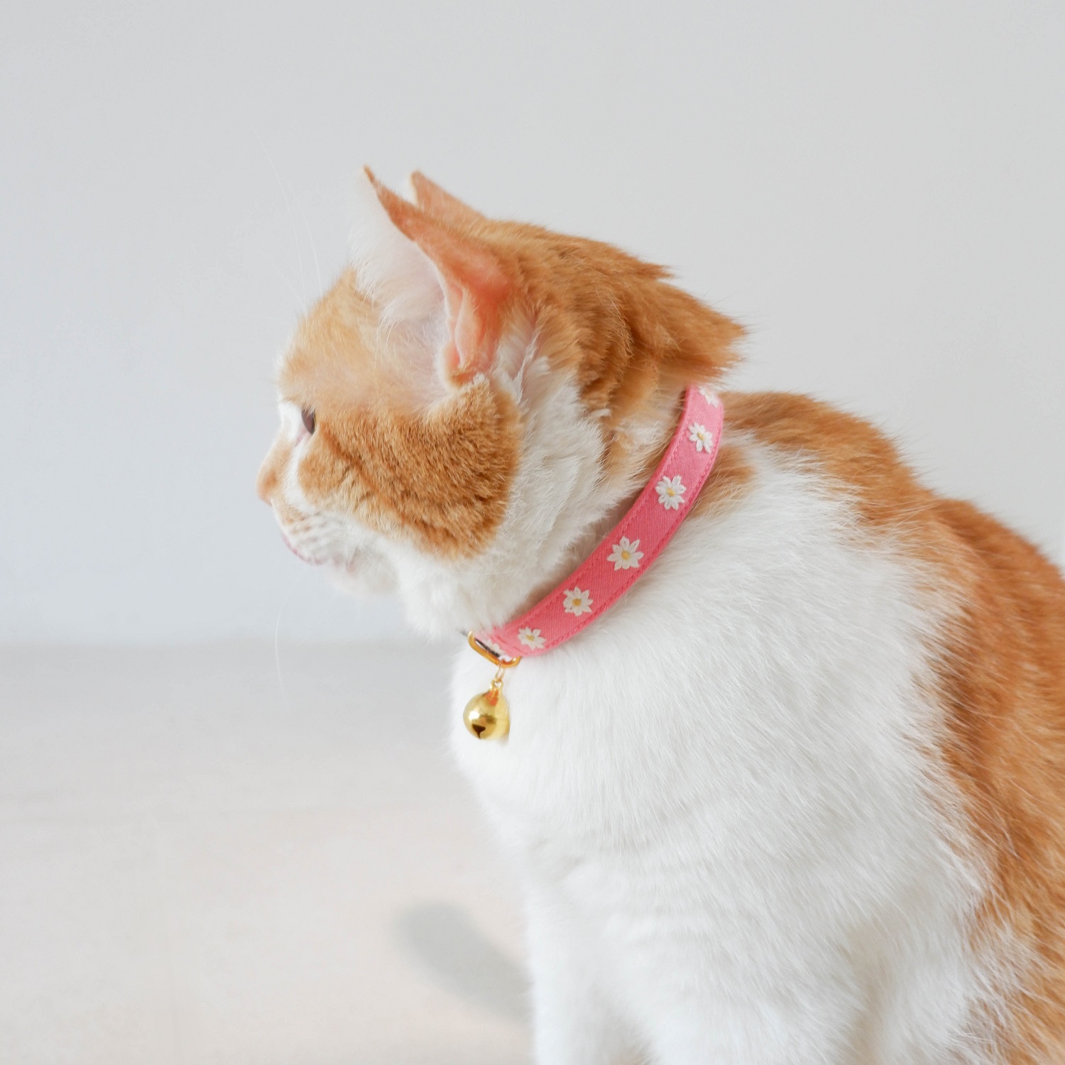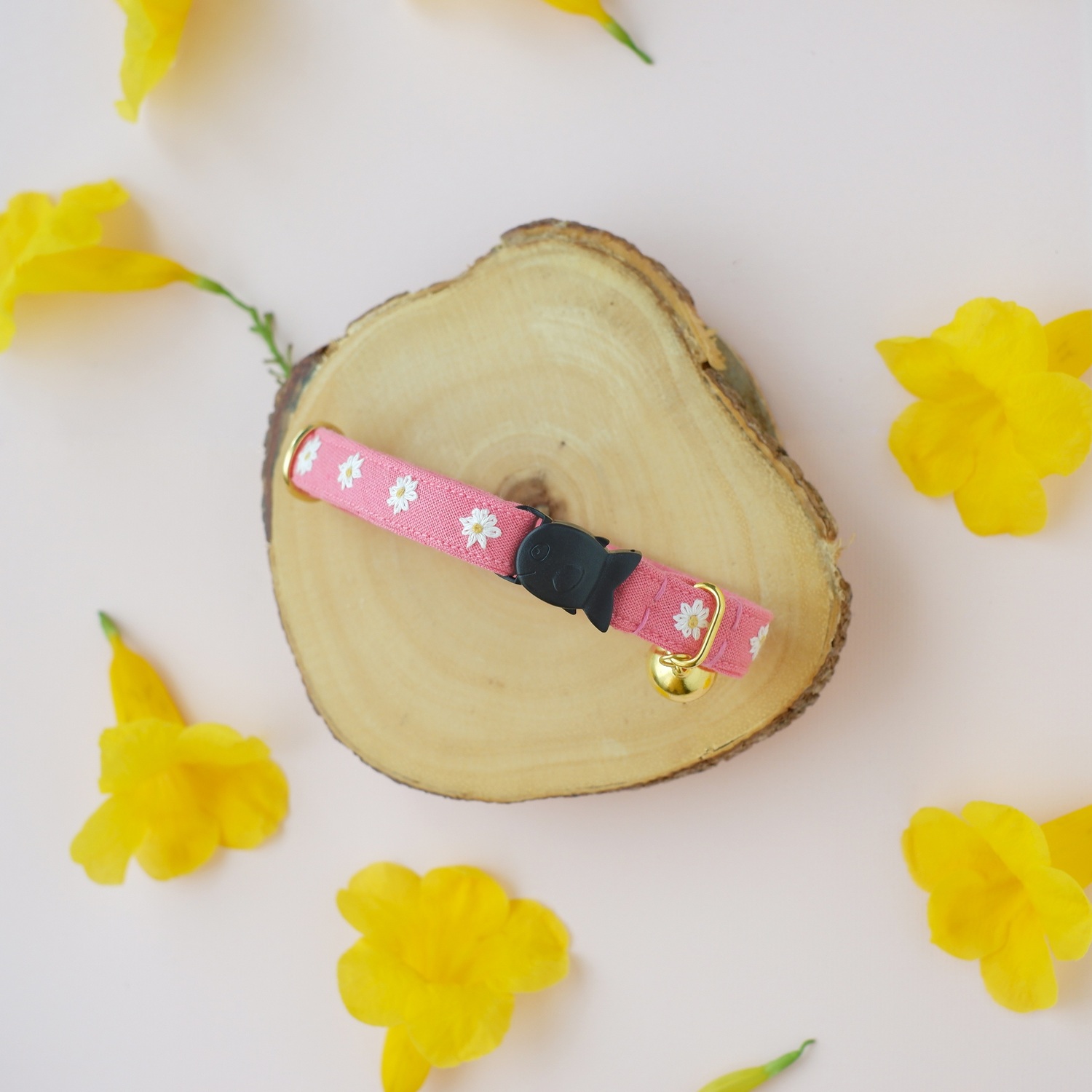 MINI DAISIES : ปลอกคอนิรภัยสำหรับแมวแฮนด์เมดปักลายดอกไม้จิ๋วบนผ้าลินิน 100 % สี Rose Pink