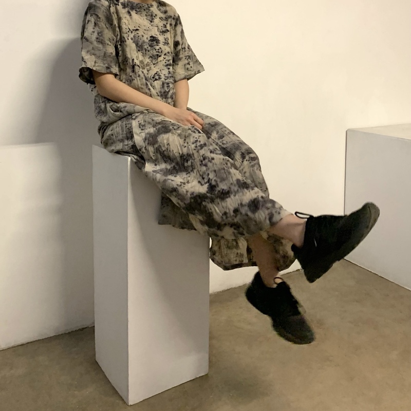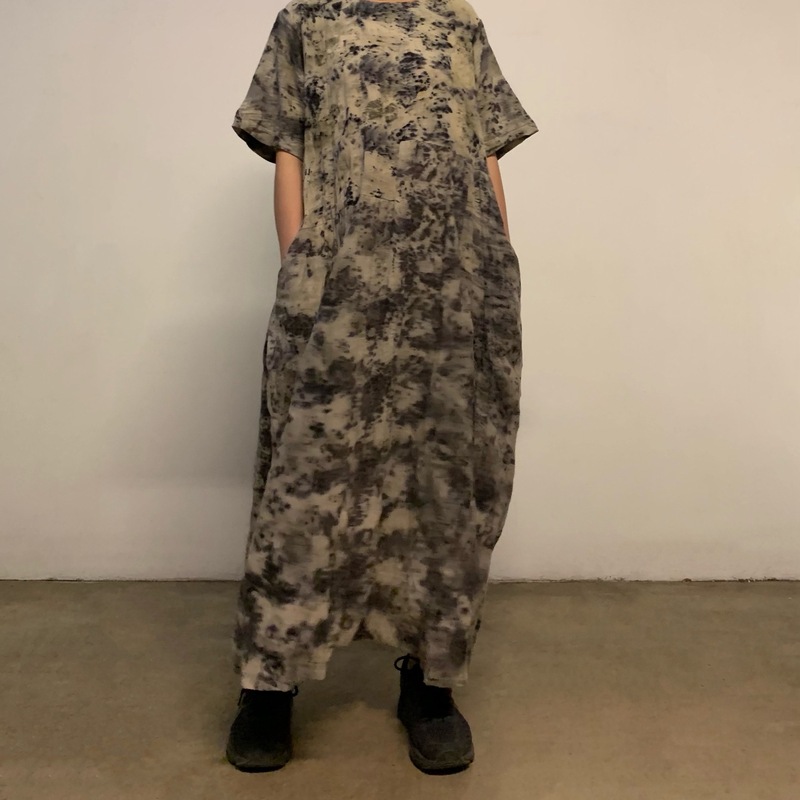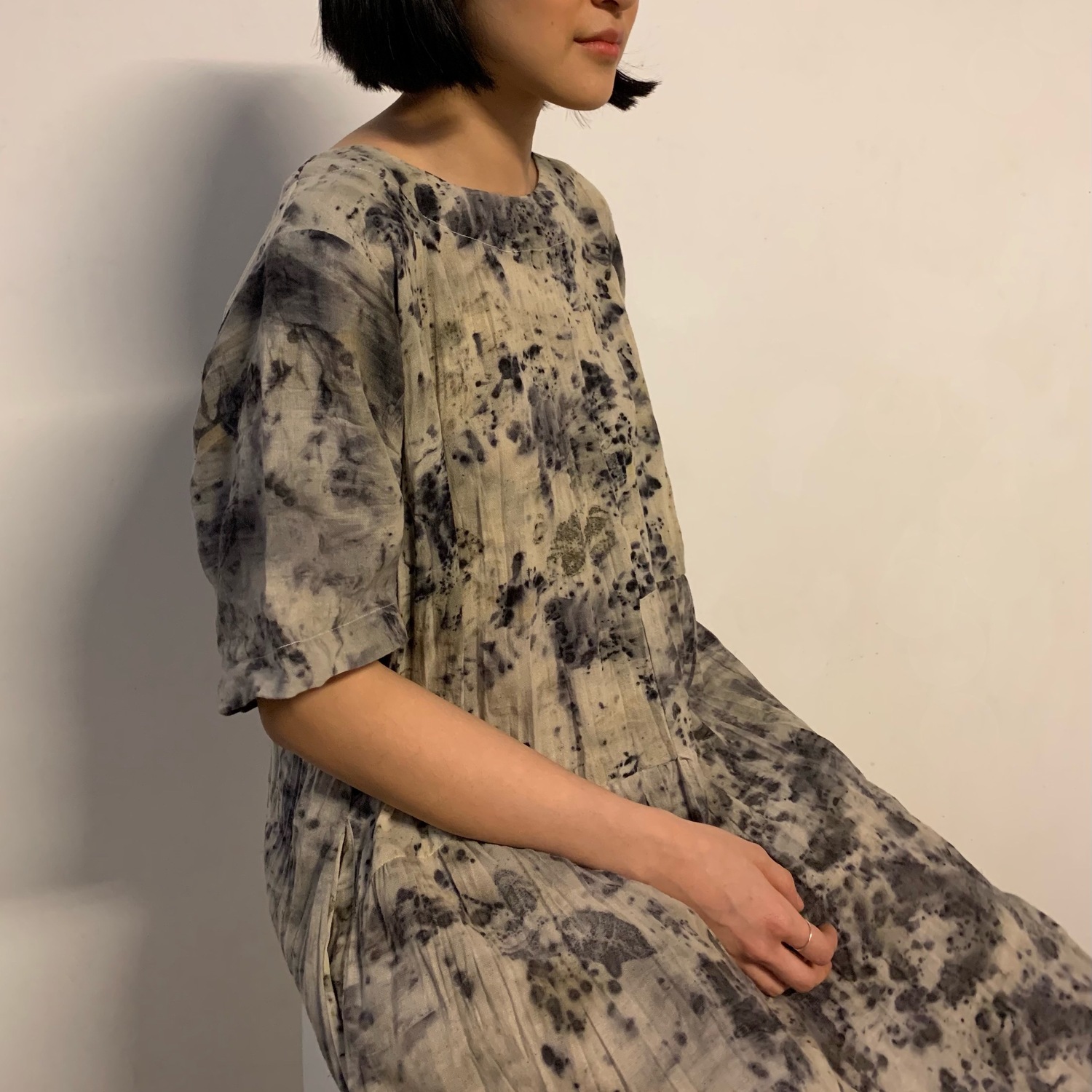 เดรสผ้าฝ้ายผ้าย่นย้อมจากกลีบกุหลาบ และใบกุหลาบ