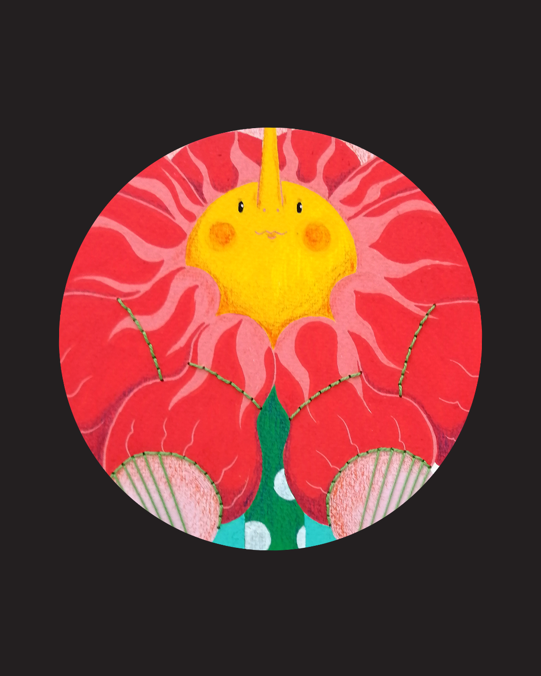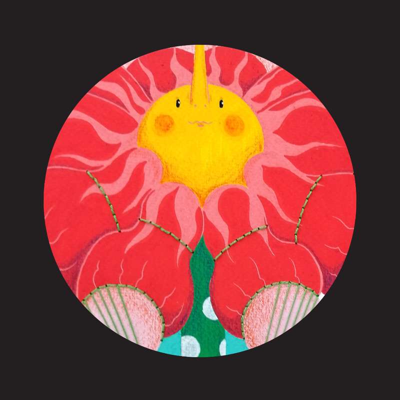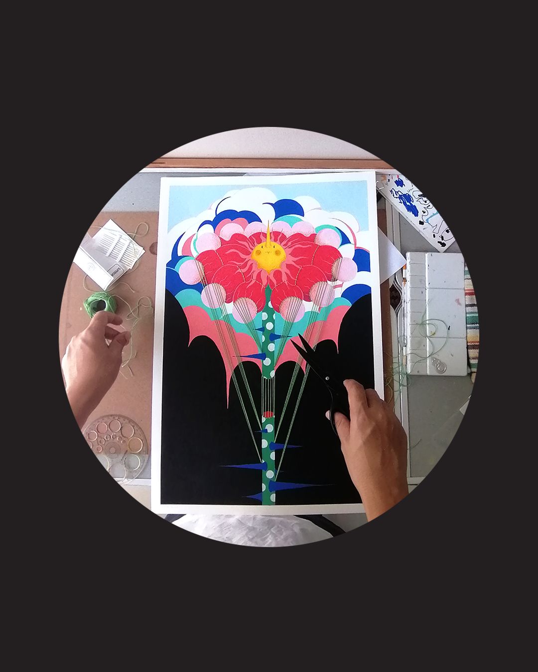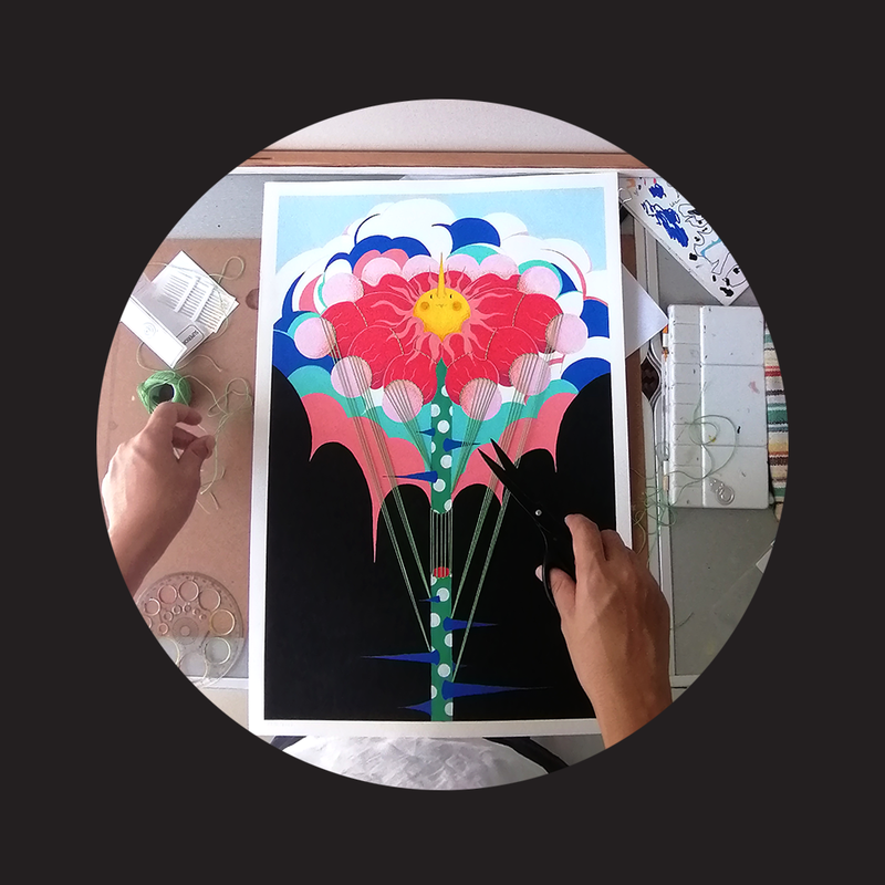 ภาพวาดต้นฉบับเทคนิค : สีอะคริลิค, ปากกาสี Posca, สีไม้, ด้ายถัก