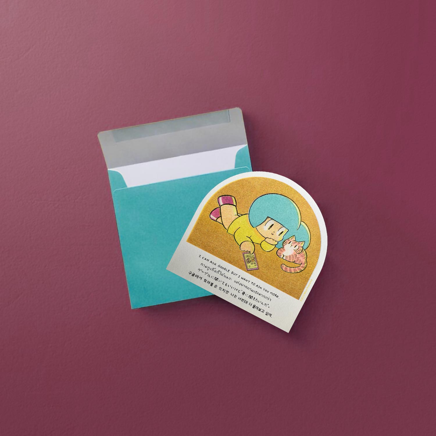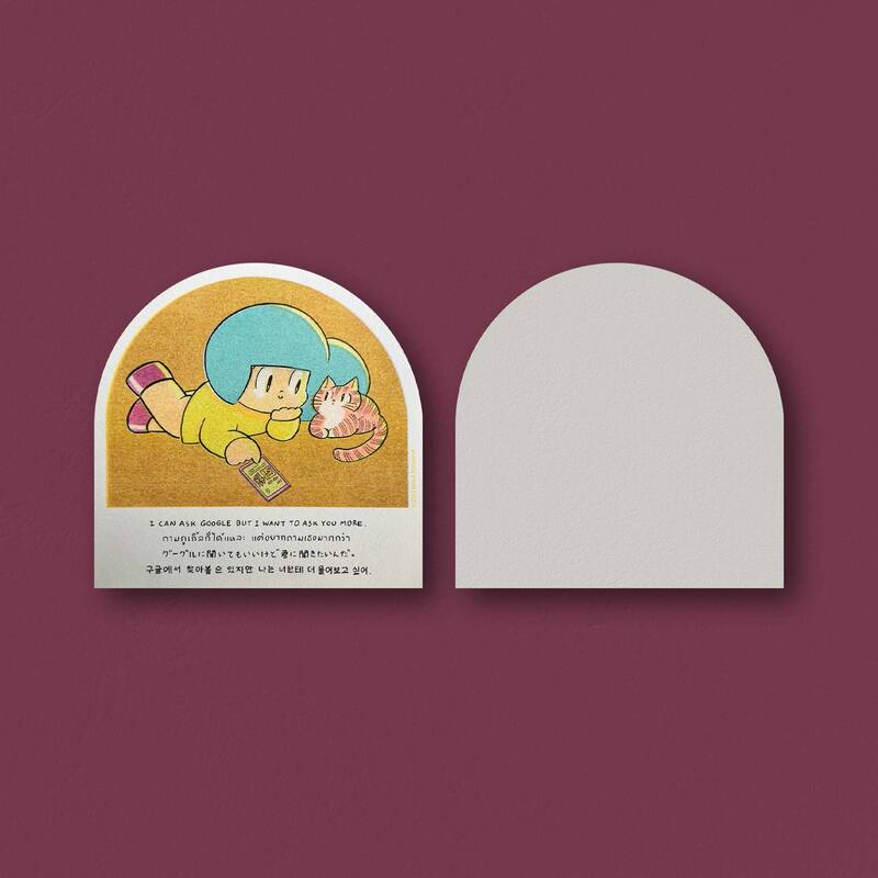 โปสการ์ดแบบโค้งลาย 'I can ask google but I want to ask you more' ถามกูเกิลก็ได้แหละ แต่อยากถามเธอมากกว่า