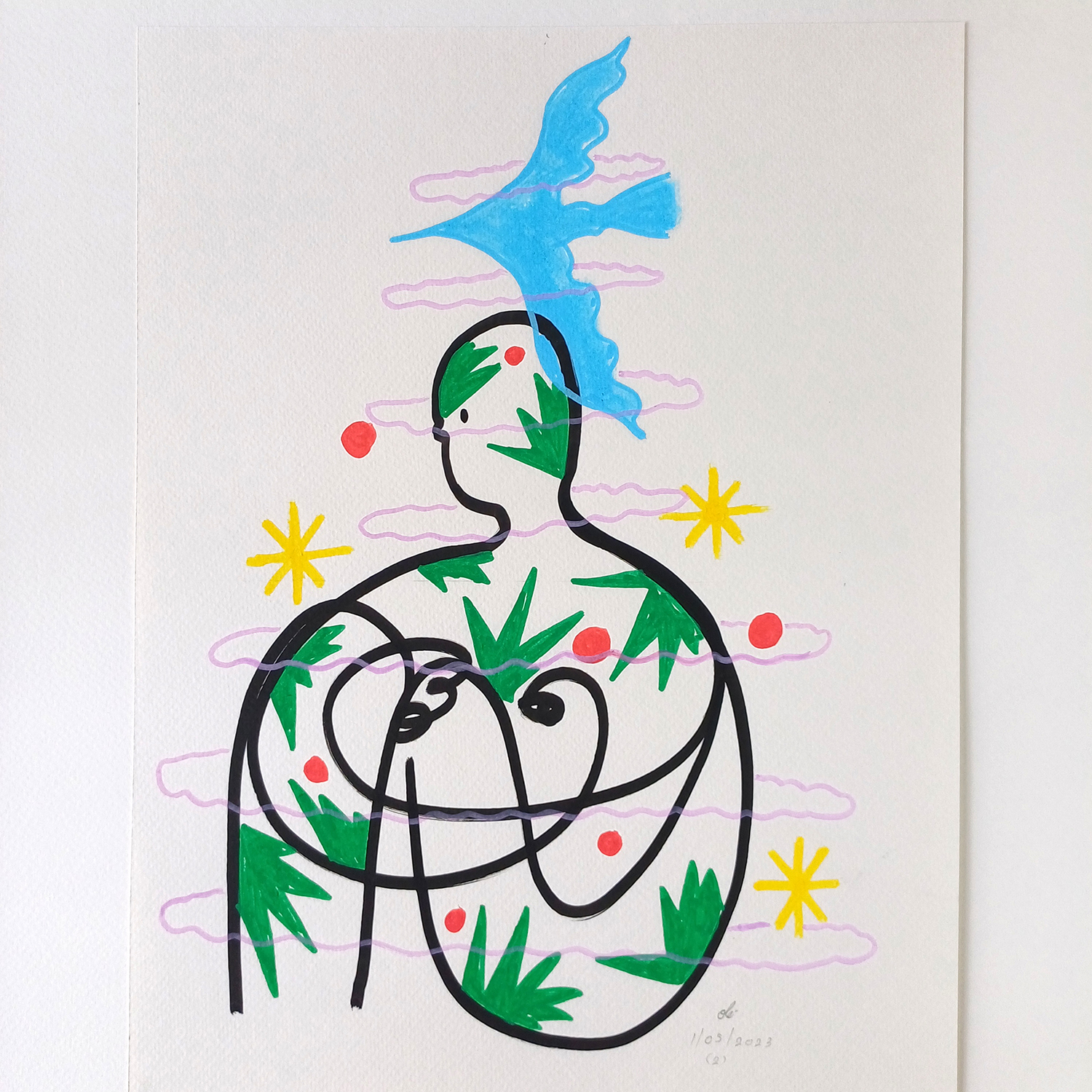 ปล่อยสมองให้โล่งว่างเปล่า แล้วจึงวาดภาพออกมาชั่วขณะนั้นในเวลา 10 นาที แบบเส้นต่อเส้น