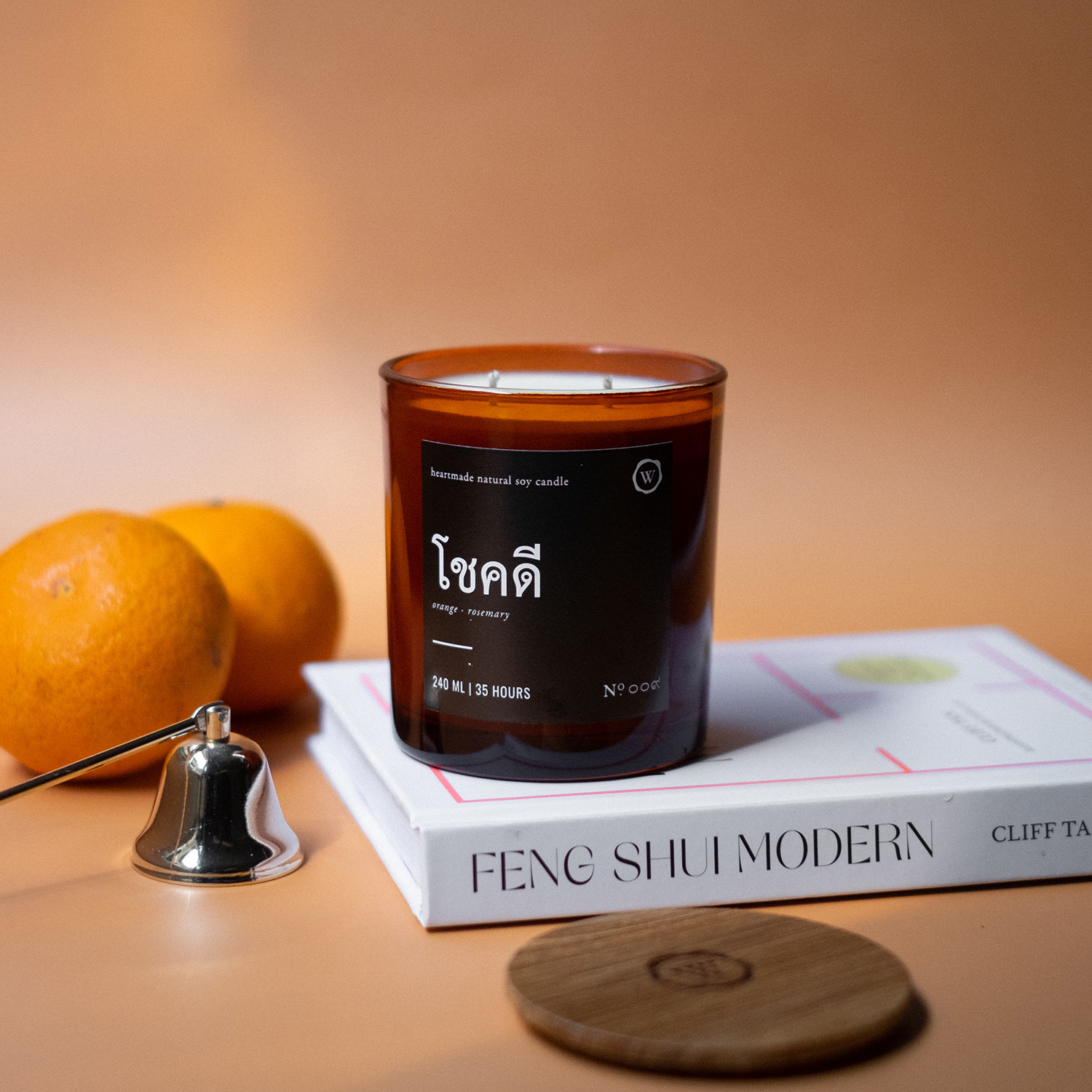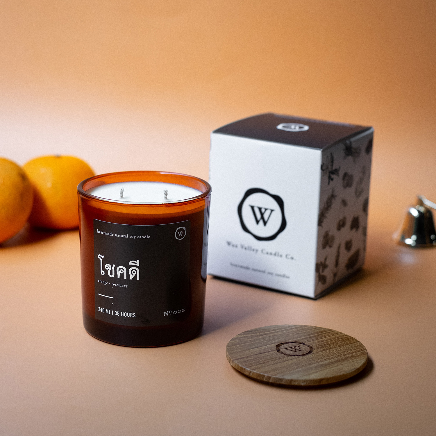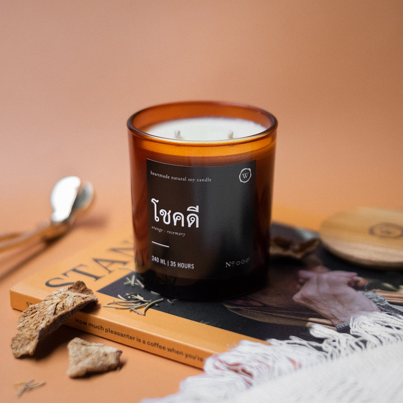 เทียนไขถั่วเหลืองธรรมชาติ กลิ่นโชคดี ขนาด Amber Jar ส่วนผสมระหว่างส้ม และโรสแมรี่ เพื่อสร้างบรรยากาศความโชคดี