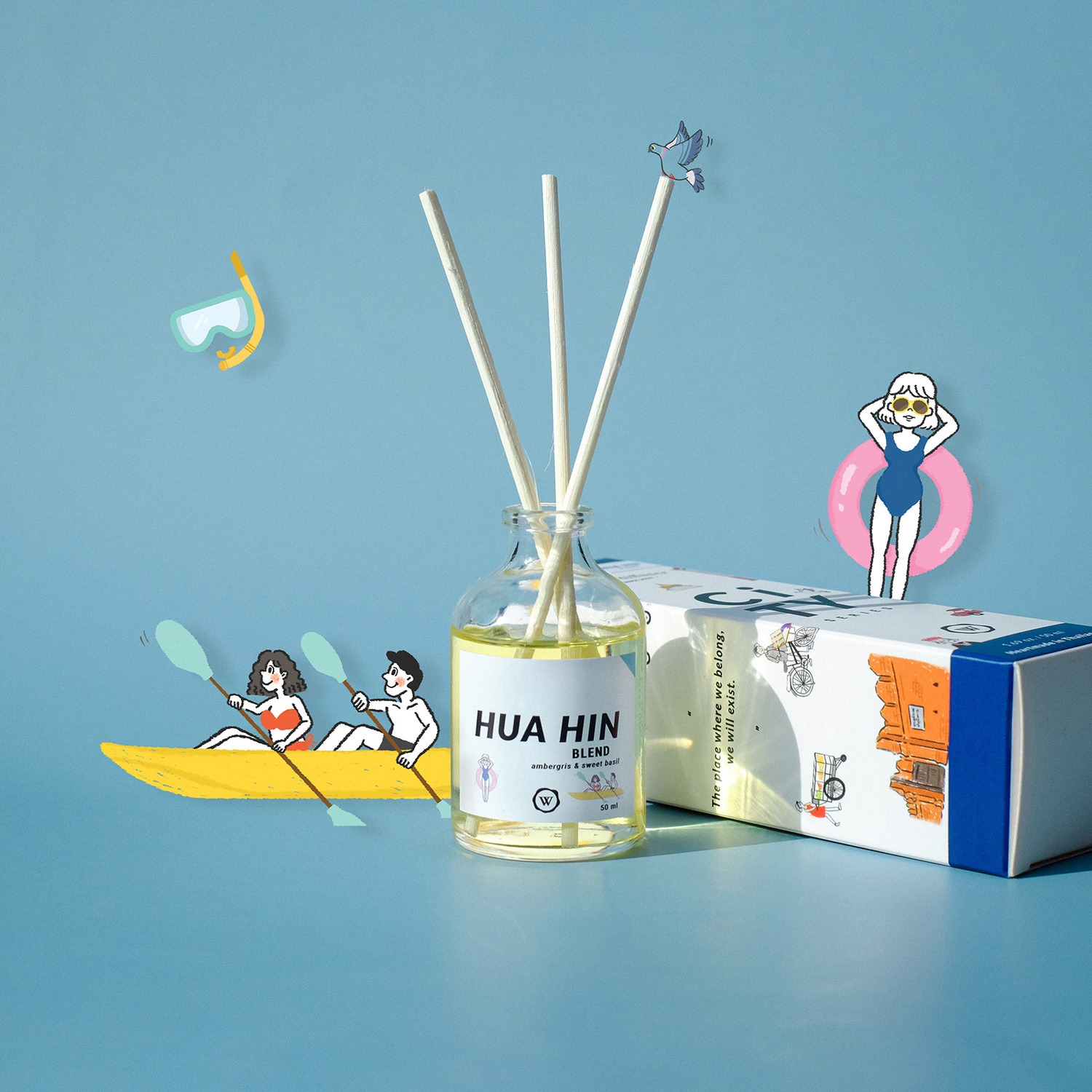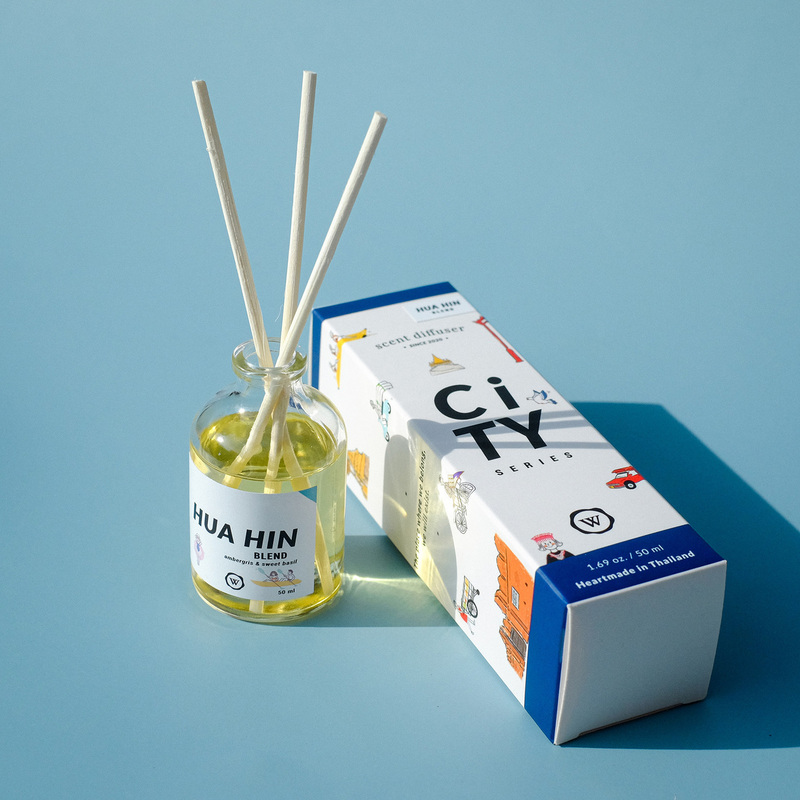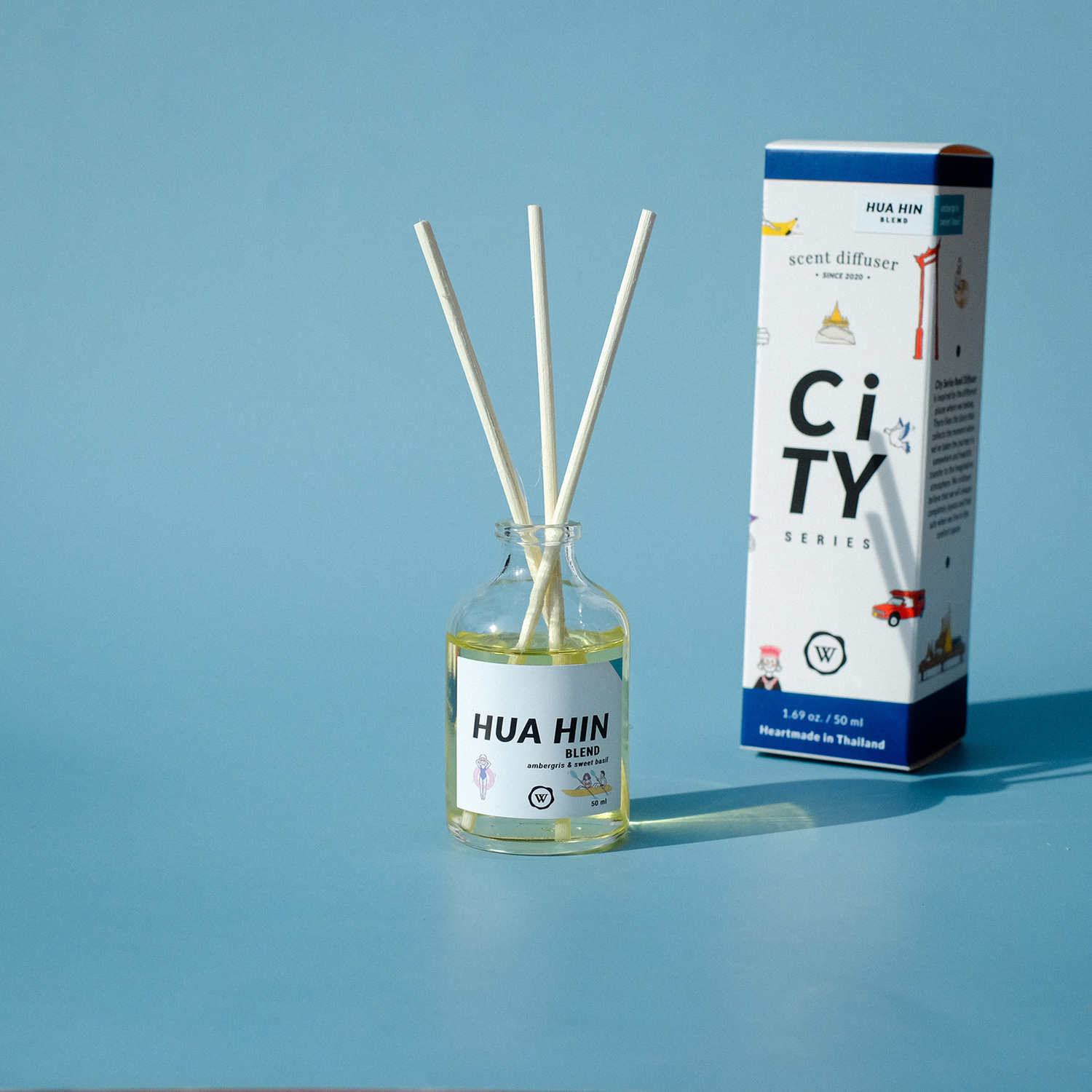 ก้านไม้หอมปรับอากาศรุ่น City Series กลิ่นหัวหิน ส่วนผสมลงตัวของกลิ่น Ambergris และ Sweet Basil ขนาด 50ml เพื่อสร้างบรรยากาศไอทะเล