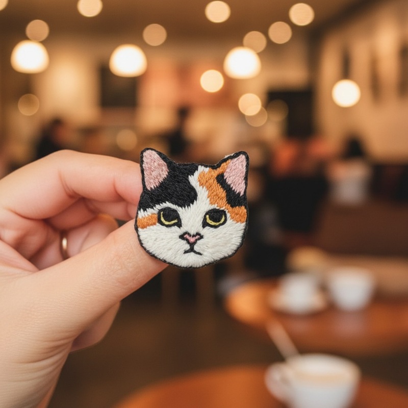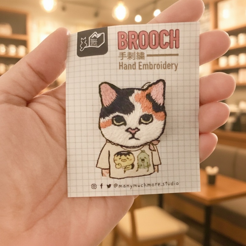 Comic Shirt Neko Pin (Tama) — Hand embroidery Brooches