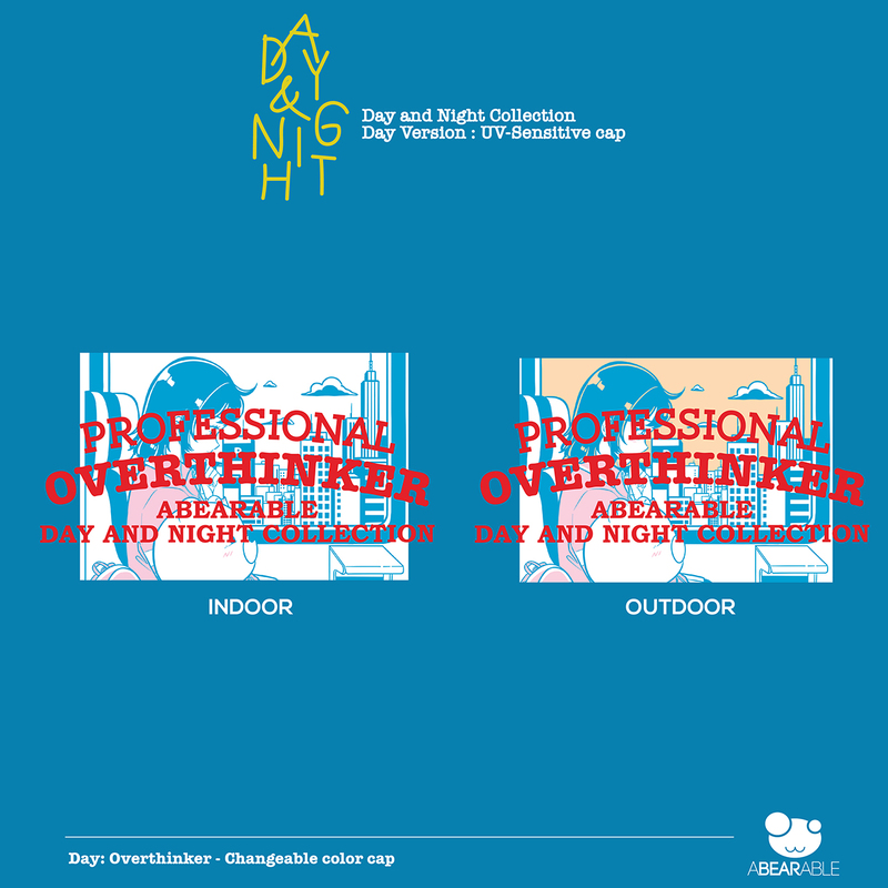 หมวกเปลี่ยนสีตามแสงแดดใบแรกจาก ABEARABLE ที่มีแรงบันดาลใจจากสีของท้องฟ้ายามเย็น ในบรรยากาศของกลางวัน เพลงบางเพลงก็อาจทำให้เราคิดถึงเรื่องที่ผ่านมาแล้ว และเรื่องราวต่างๆที่ผ่านเข้ามาที่มีแต่ความเปลี่ยนแปลงและความไม่แน่นอน เราคิดถึงลายเส้นการ์ตูนแบบ City pop นำมาใช้กับเทคนิค Signature ของแบรนด์ในการเปลี่ยนสีได้ตามแสงแดดในลาย Day นี้