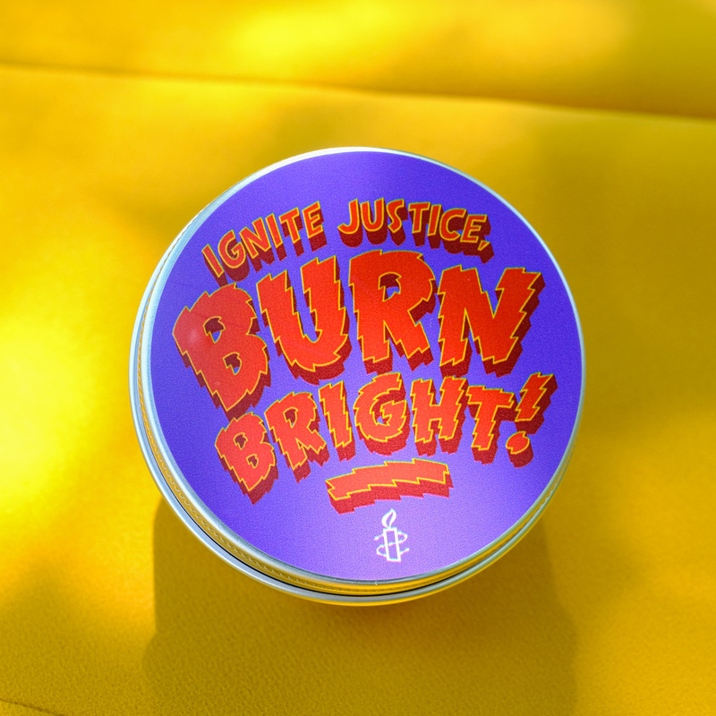เทียนหอมไขถั่วเหลืองจากธรรมชาติจึงมั่นใจได้ว่าปลอดภัย บรรจุภัณฑ์ตลับอลูมิเนียม เบา พกพาง่าย กันฝุ่น รายได้จากเทียนหอมทุกชิ้นสนับสนุนการทำงานด้านสิทธิมนุษยชนกับ แอมเนสตี้ อินเตอร์เนชั่นแนล ประเทศไทย